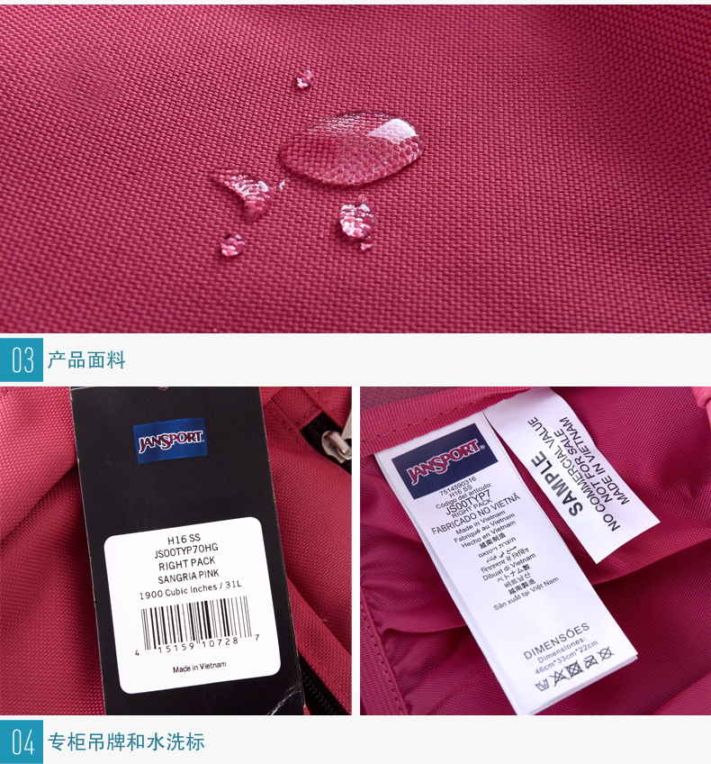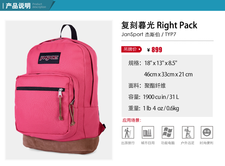 商品名称:JanSport/杰斯伯 双肩包男女电脑包书包皮革底 TYP7 0HG
