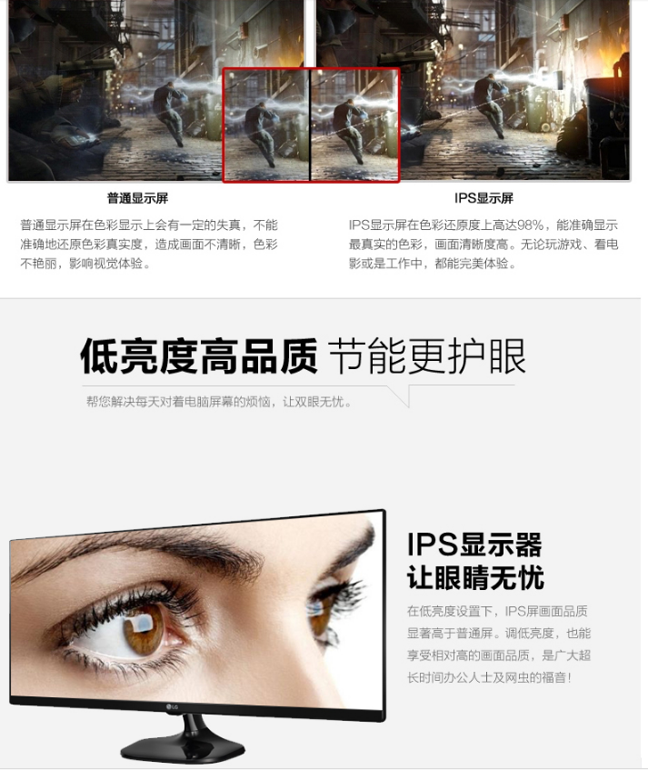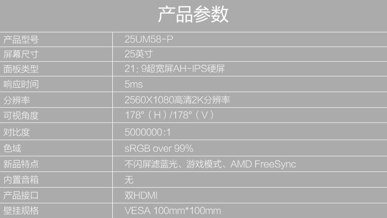 商品名称:LG 21:9 带鱼屏 2K高清 IPS屏 双HDMI接口 25UM58-P