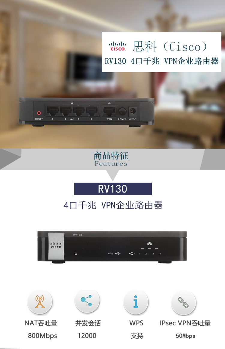 商品名称:CISCO/思科 RV130-K9-CN有线千兆VPN路由器 带防火墙RV130路由器