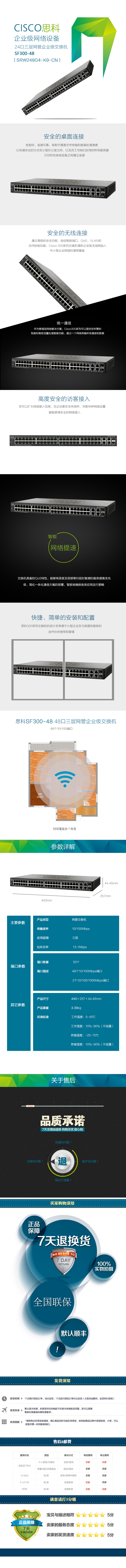 商品名称:CISCO/思科 SF300-48(SRW248G4-K9-CN)48口百兆三层网管企业级交换机