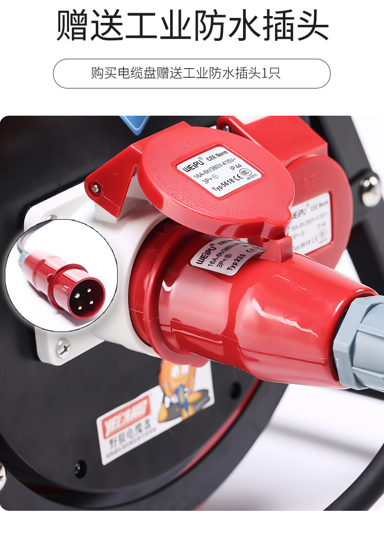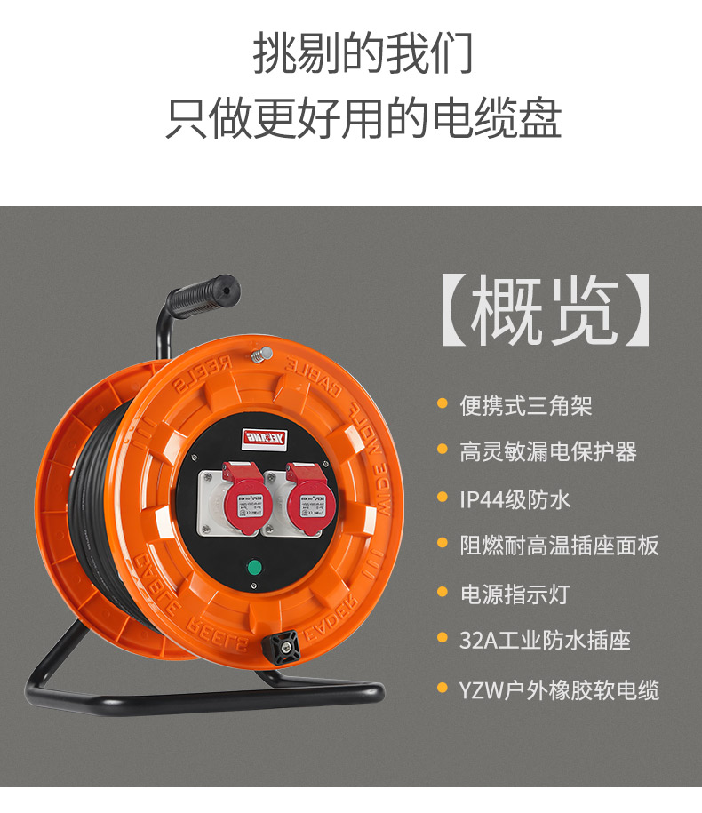 商品名称:野狼 YL-S33GS3-A 三角架移动电缆盘带漏电缆卷盘国标插座防水防尘