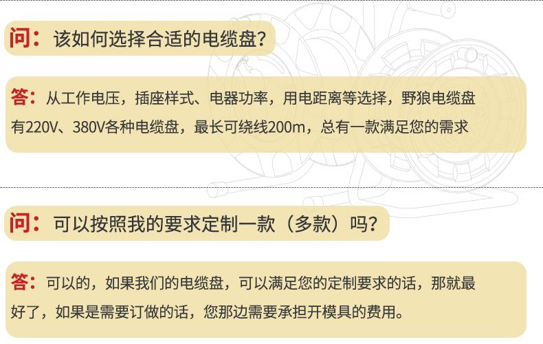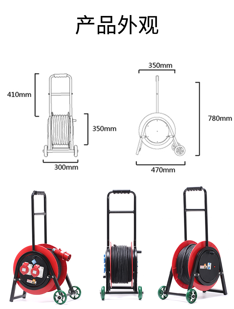 商品名称:野狼 YL-35CGS3-B 车轮式移动电缆盘电缆卷盘工业插座线卷盘