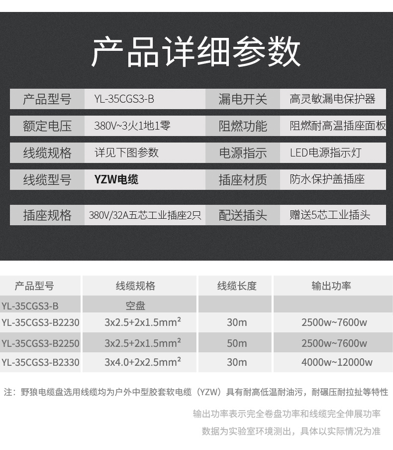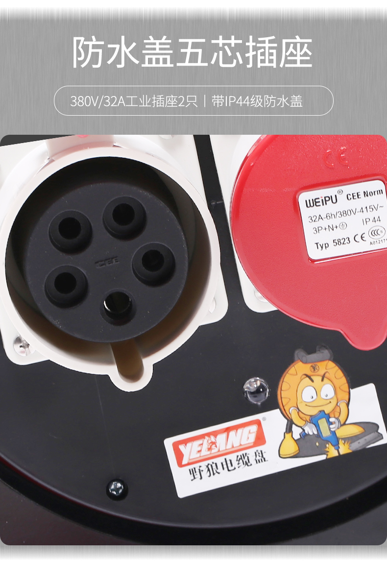 野狼 YL-35CGS3-B 车轮式移动电缆盘电缆卷盘工业插座线卷盘