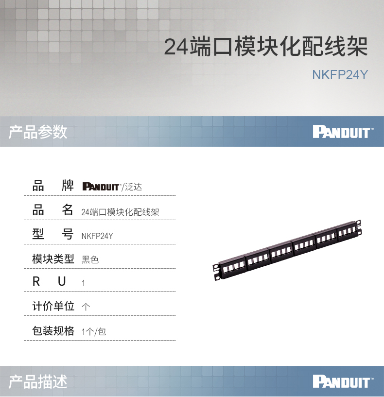 Panduit泛达网络配线架NKFP24Y网线模块机柜理线架六类24口配线架