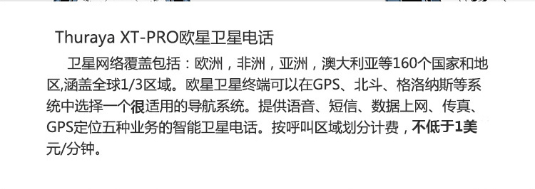 商品名称:THURAYA/欧星 XT-pro北斗GPS定位海事旅游无人区电话手机