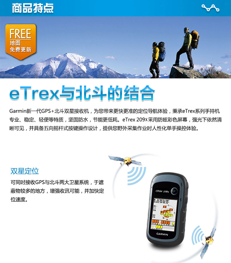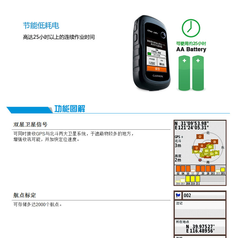 商品名称:Garmin/佳明 eTrex209X GPS+北斗双星定位 手持机