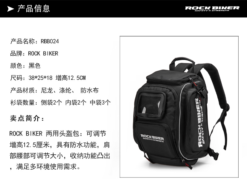 商品名称:ROCK BIKER 摩托骑士包油箱包头盔包双肩包防水包 RBB024