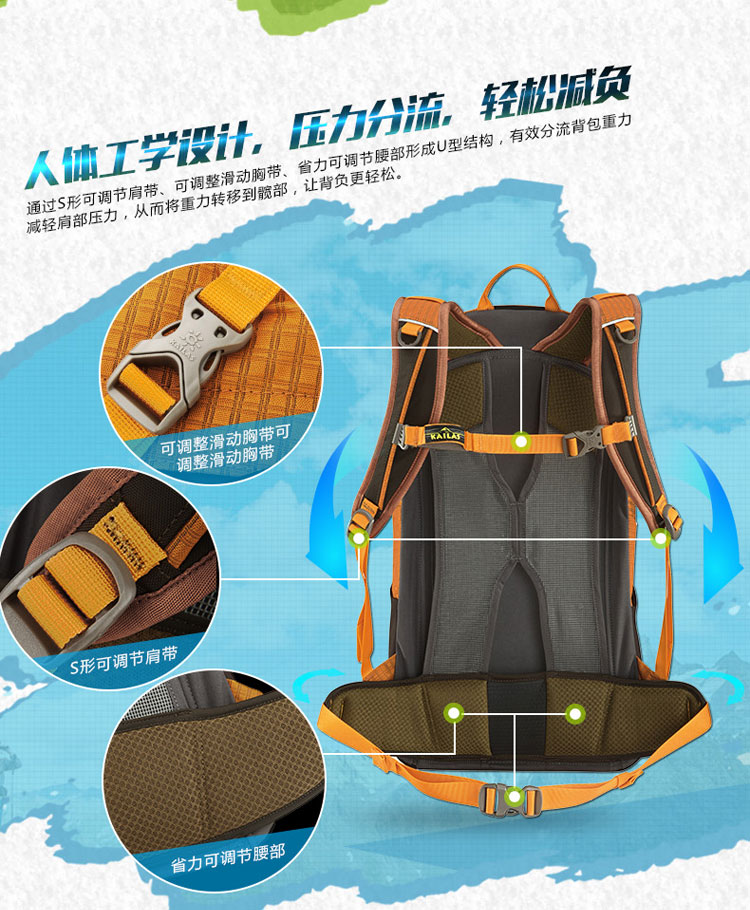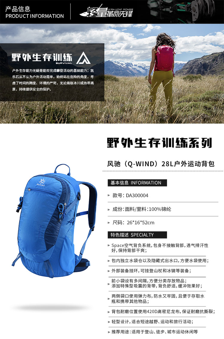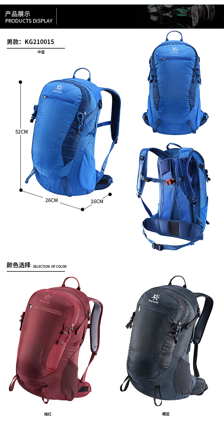 商品名称:Kailas/凯乐石 户外徒步双肩包 运动登山耐磨百搭背包 DA300004