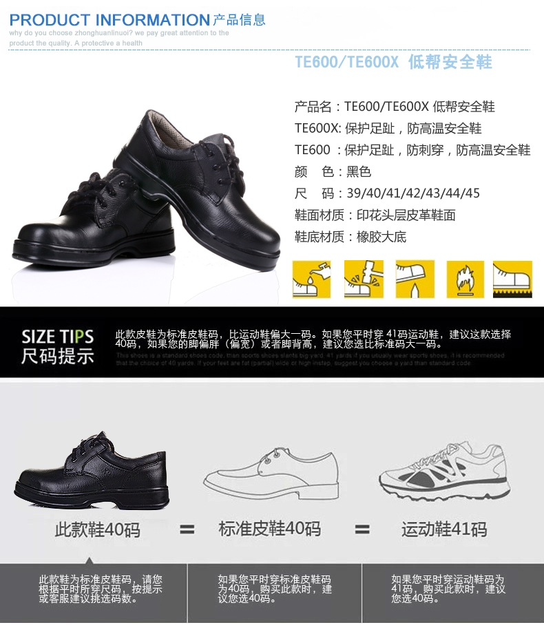 商品名称:霍尼韦尔 TE600低帮安全鞋K2 耐高温防护鞋劳保鞋防砸防穿刺防静电