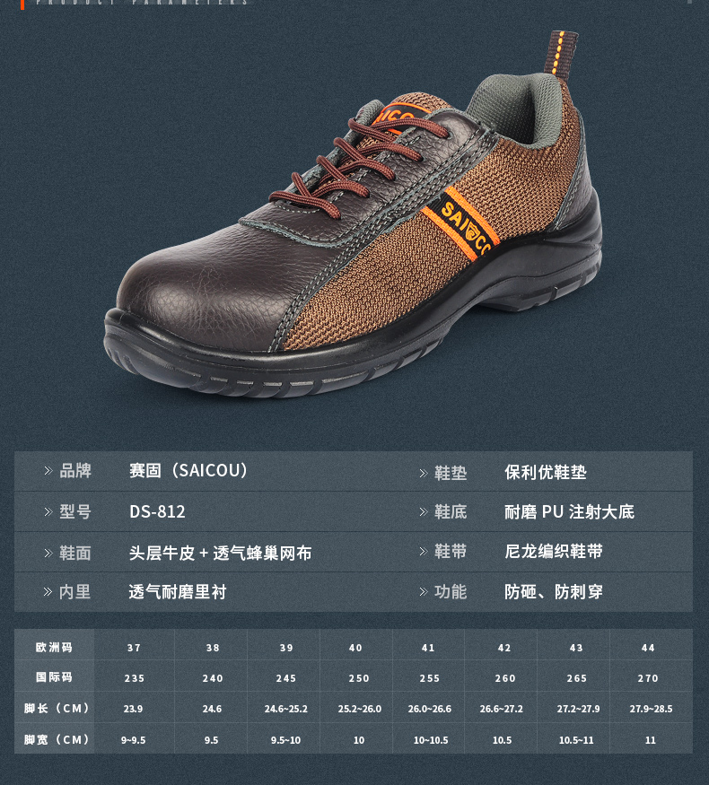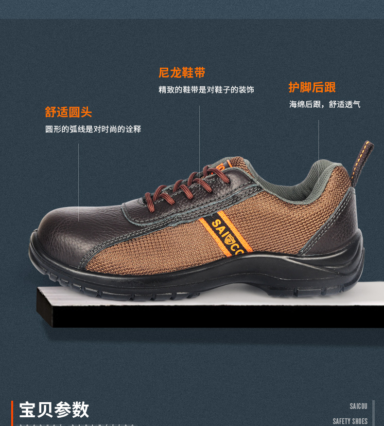 商品名称:赛固 透气劳保鞋钢板女防滑透气夏季防砸防刺穿安全鞋钢包头防护鞋