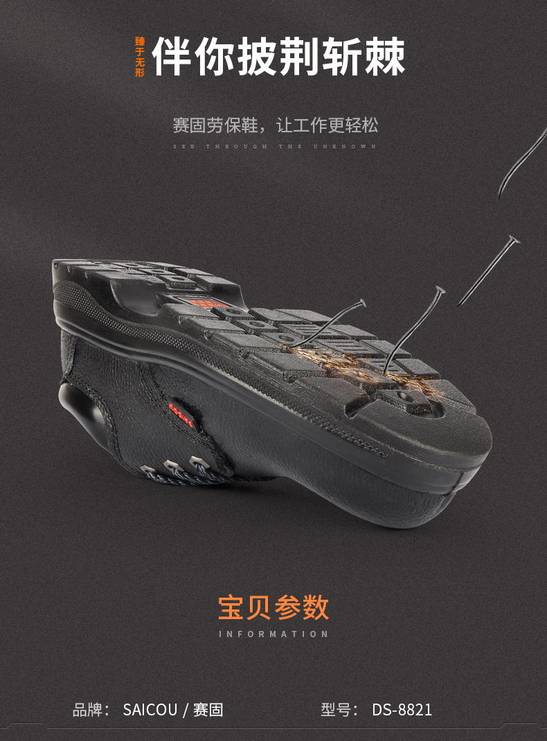 商品名称:赛固 防砸防刺穿绝缘真皮安全鞋耐磨透气劳保鞋男轻便老保工作鞋夏