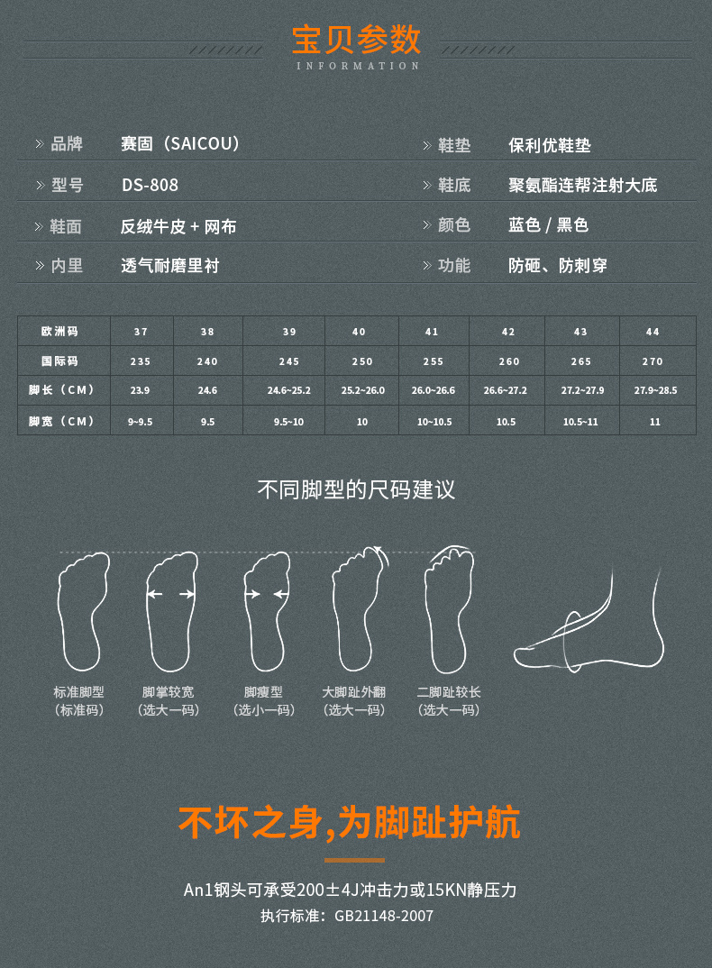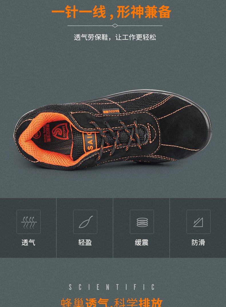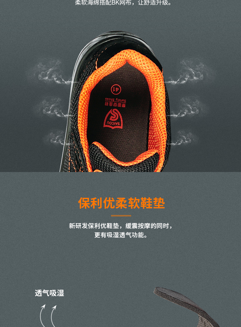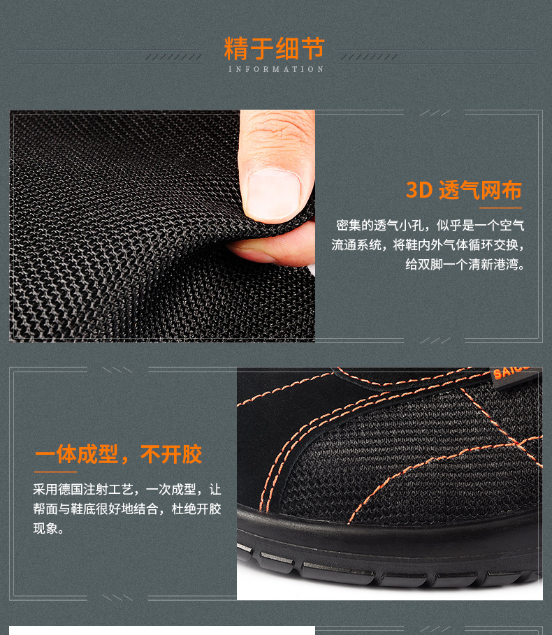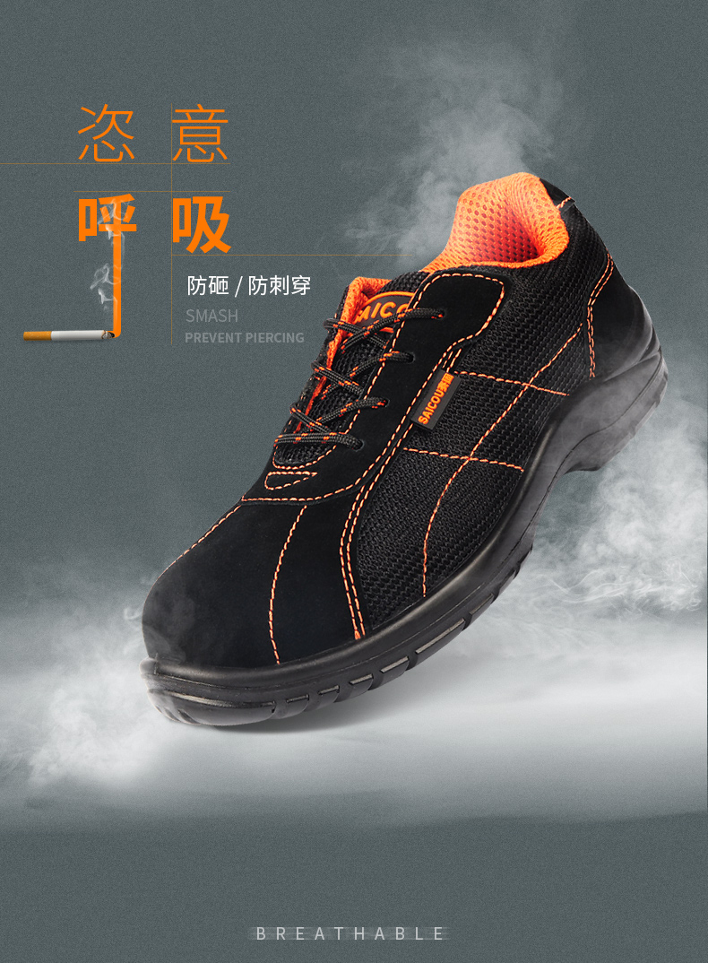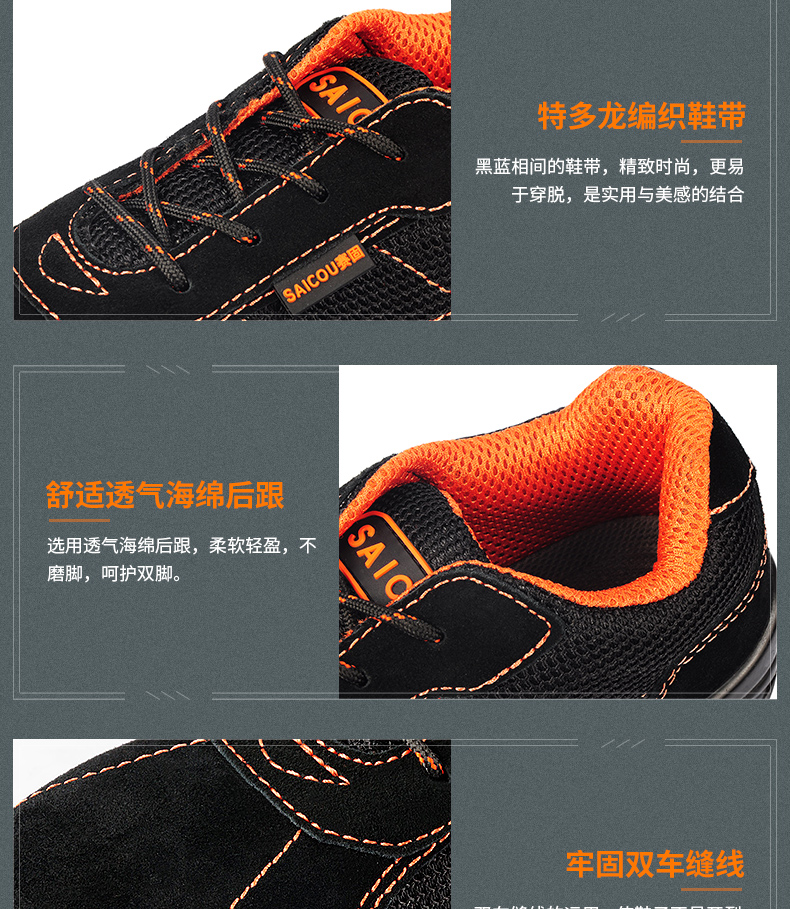 商品名称:赛固 夏季透气休闲真皮劳保鞋男士防砸防刺穿钢包头耐用安全鞋