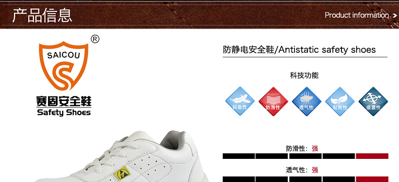 商品名称:赛固 真皮防静电劳保鞋无尘鞋透气夏季钢头防砸软底休闲安全工作鞋