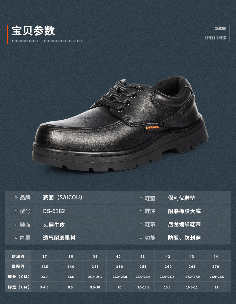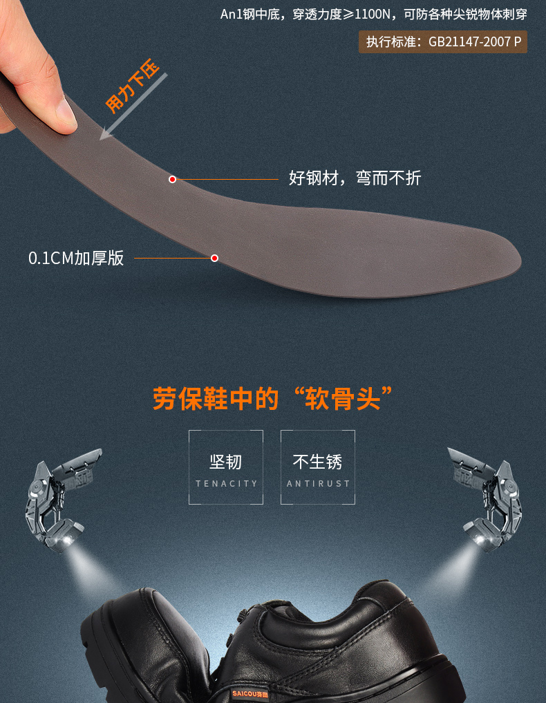 商品名称:赛固 商务休闲劳保鞋男钢包头防砸防刺穿耐高温工作安全鞋真皮软底夏季