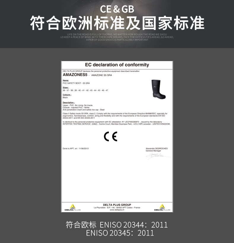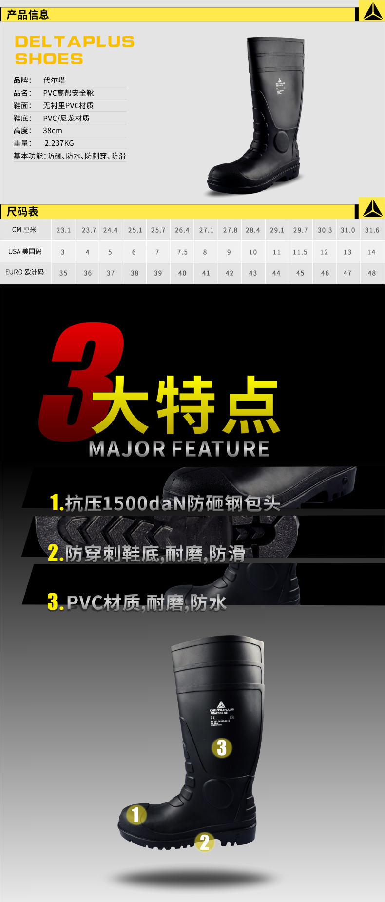 商品名称:代尔塔 防化靴 防砸 防刺穿耐酸碱防水 工作雨鞋防滑雨靴高筒