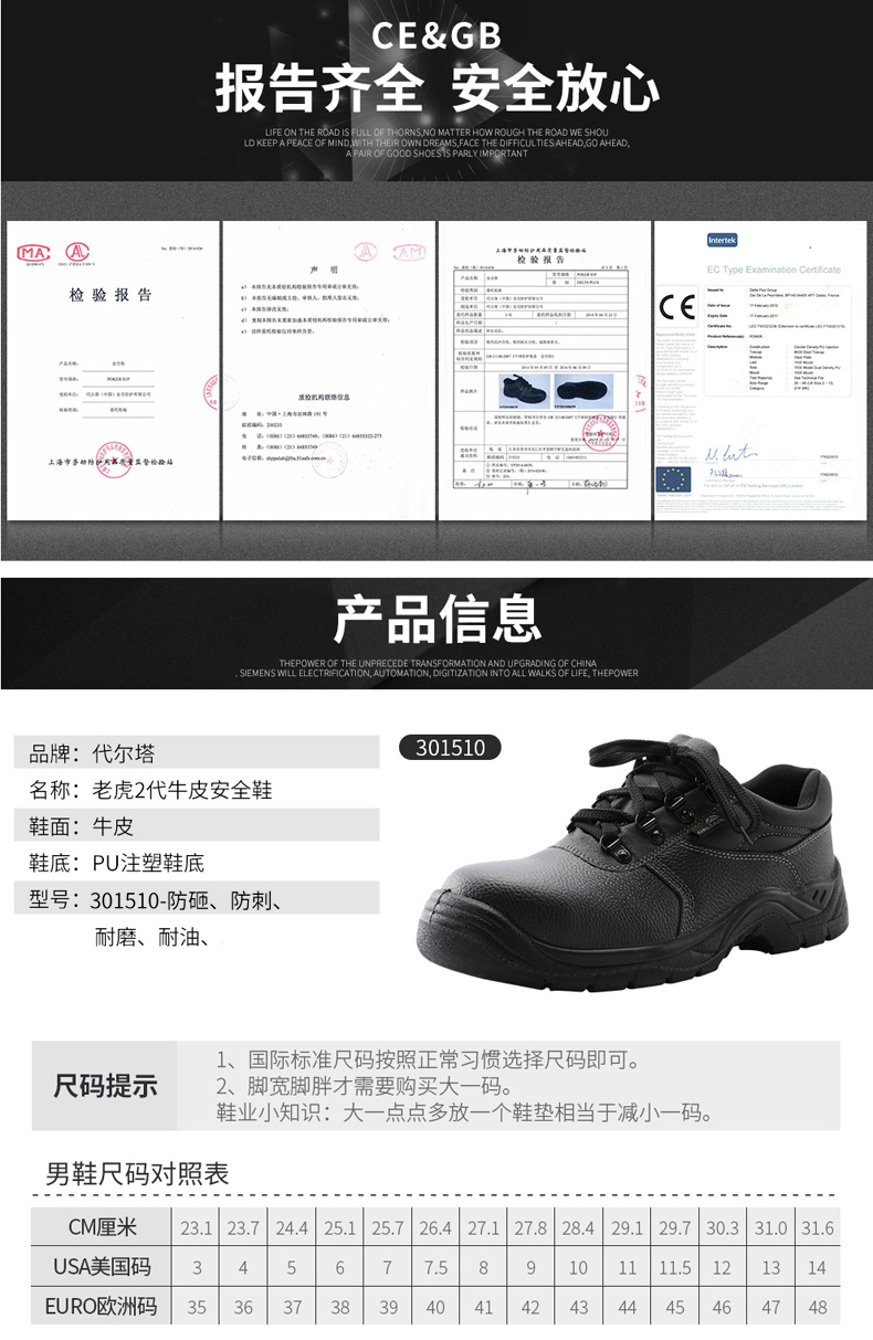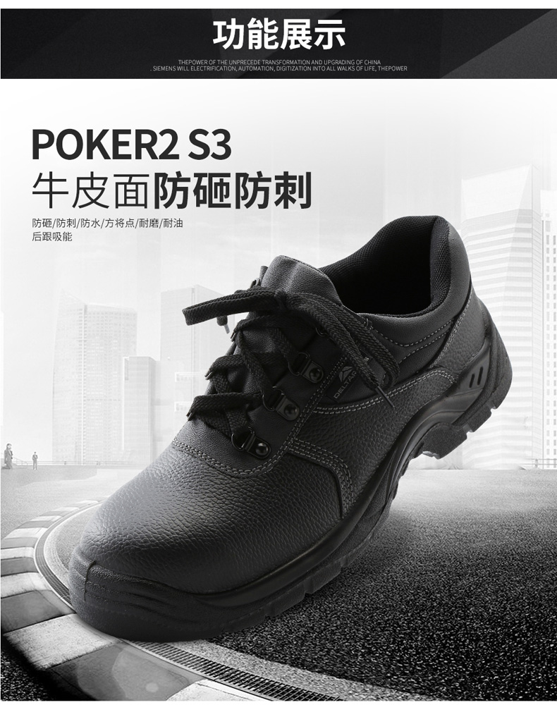 商品名称:代尔塔 安全鞋钢包头防砸防穿刺静电透气牛皮劳保鞋工作鞋耐磨防滑
