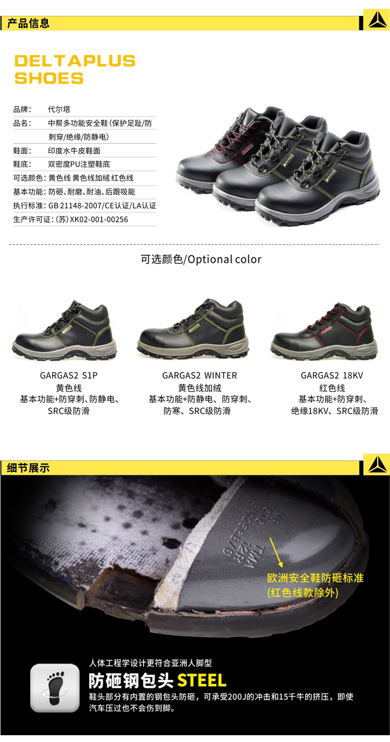 商品名称:代尔塔 牛皮劳保鞋钢包头防砸防刺穿钢板安全工作绝缘鞋电焊电工鞋