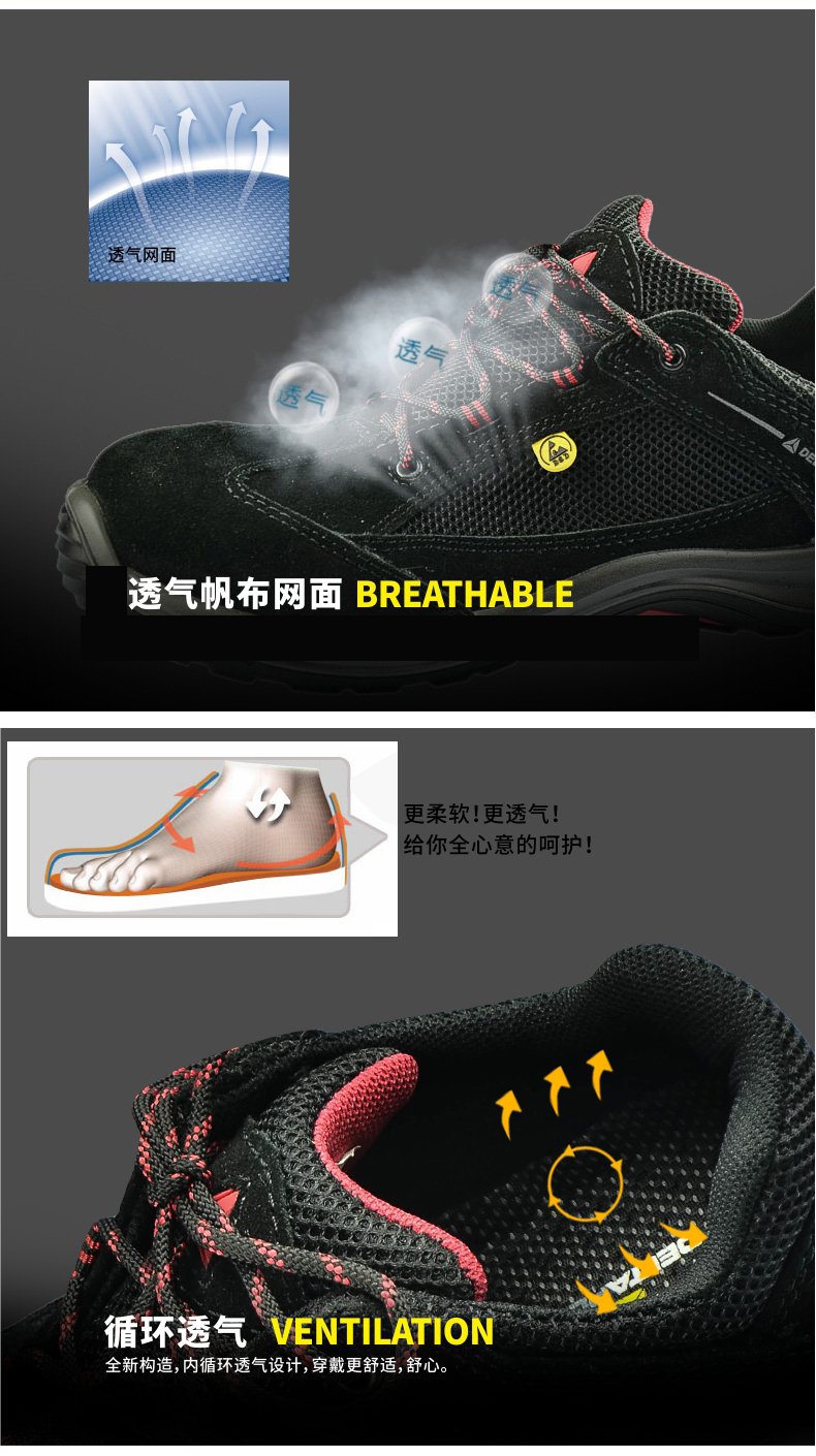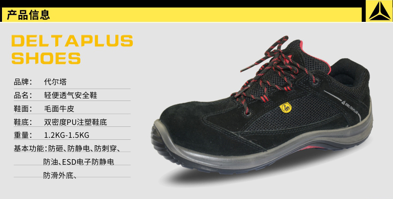 商品名称:代尔塔 夏季透气工作鞋劳保鞋钢包头防砸防静电防滑安全鞋防臭男女