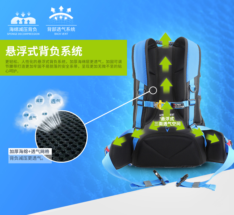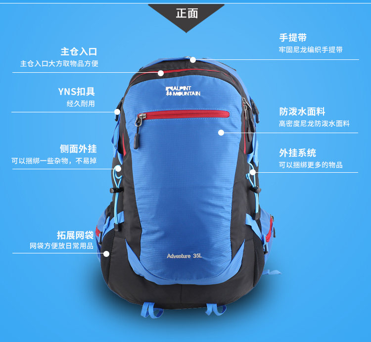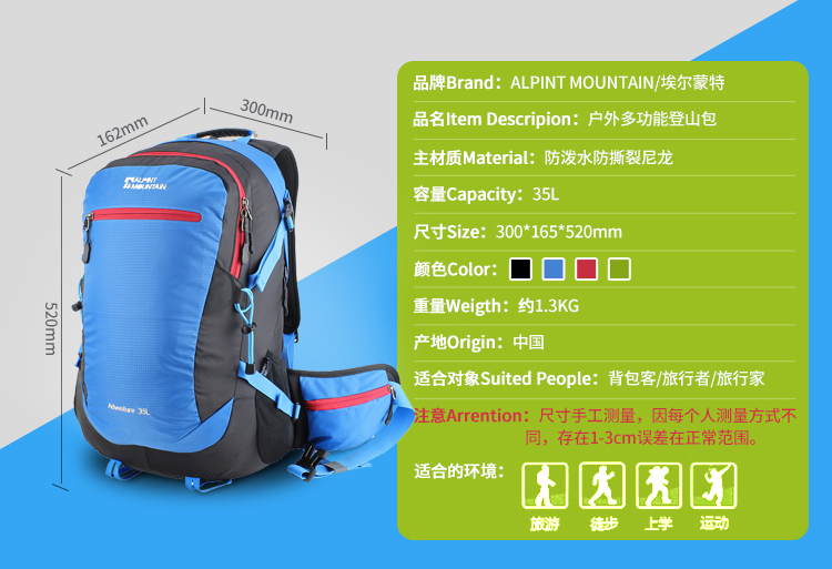 商品名称:埃尔蒙特 户外登山背包双肩包轻便运动登山包35L 630-703