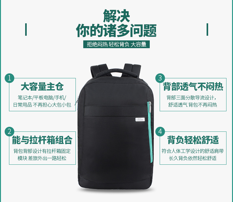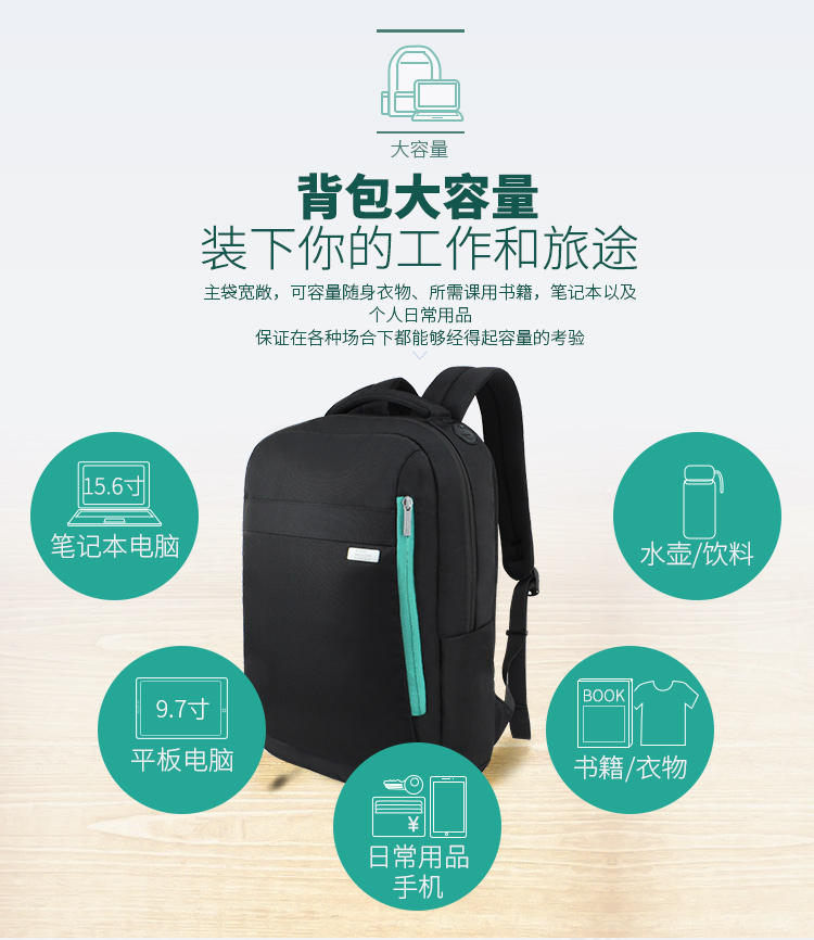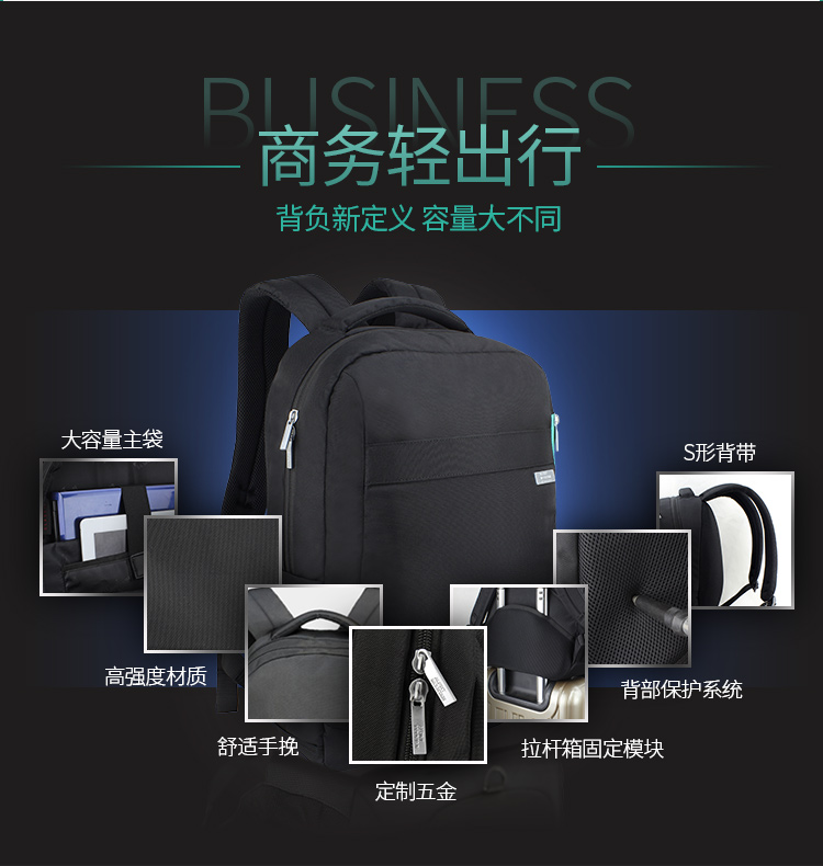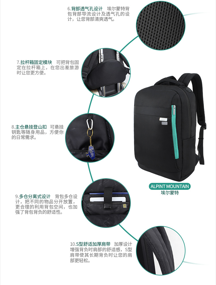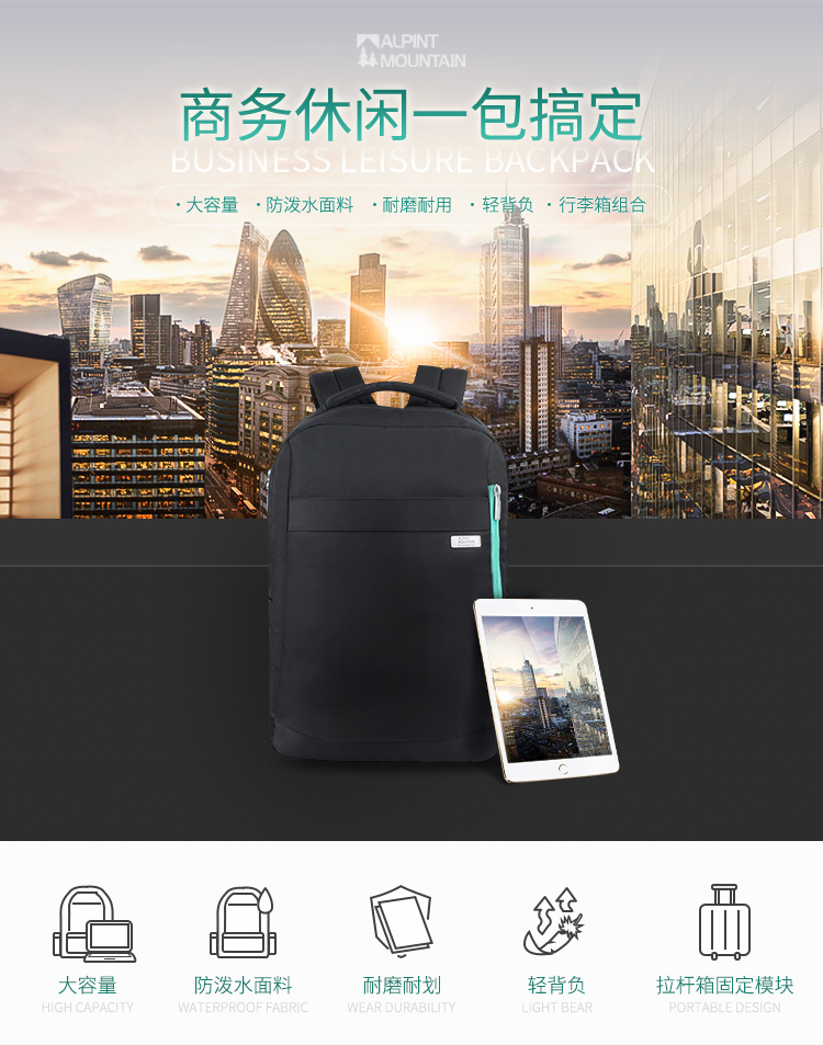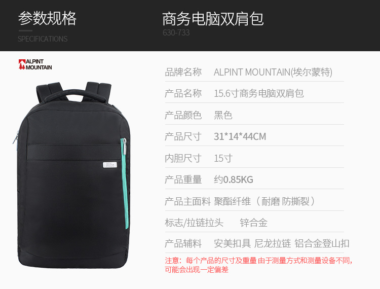 商品名称:埃尔蒙特 电脑双肩包商务休闲双肩背包耐磨 630-733