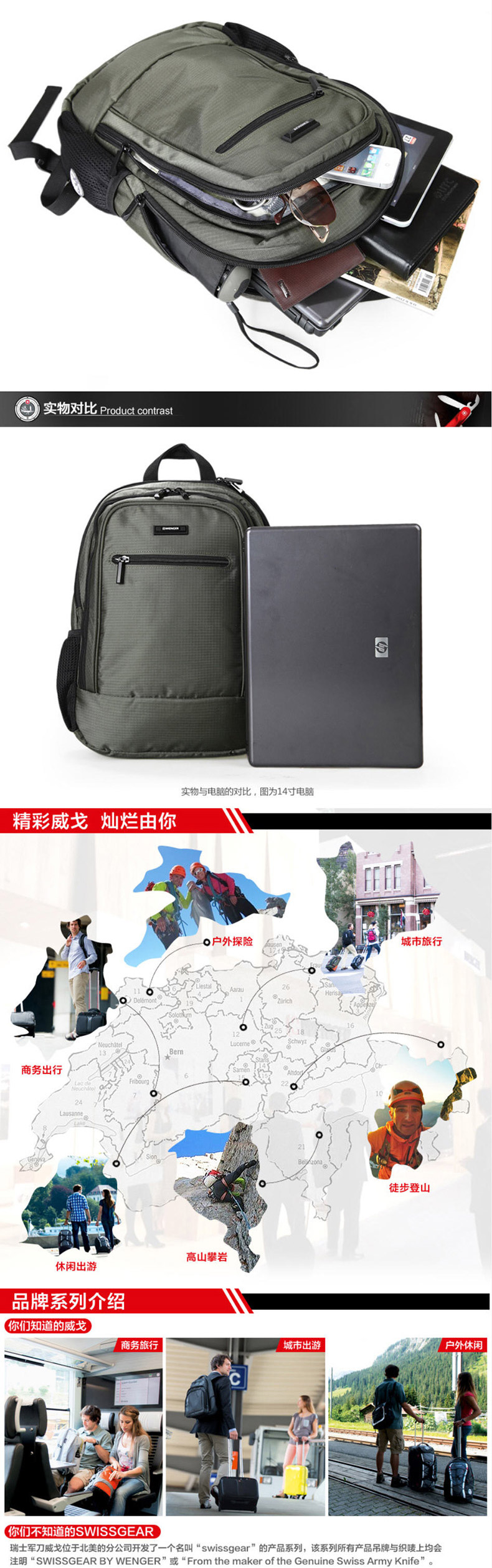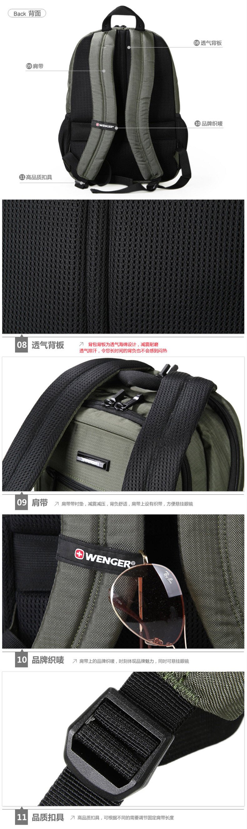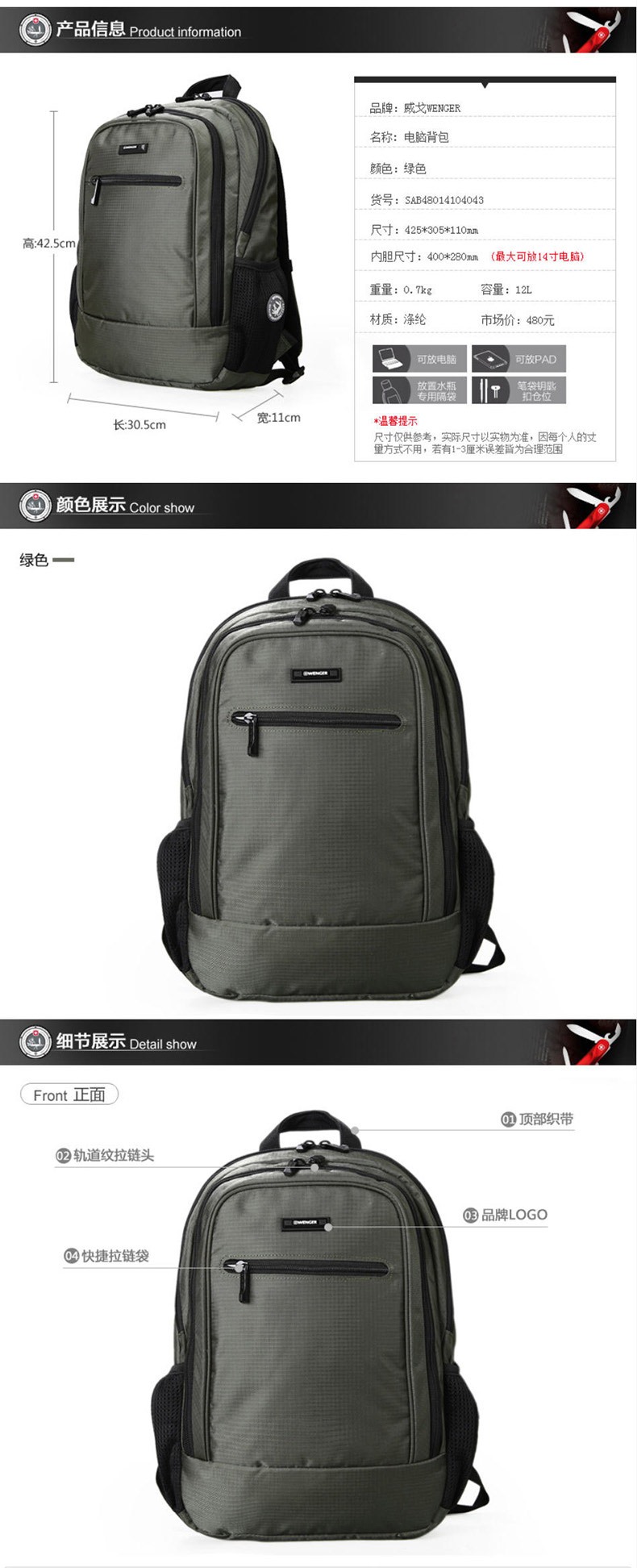 商品名称:Wenger/威戈 深绿色电脑包14寸双肩包休闲包SAB48014104043