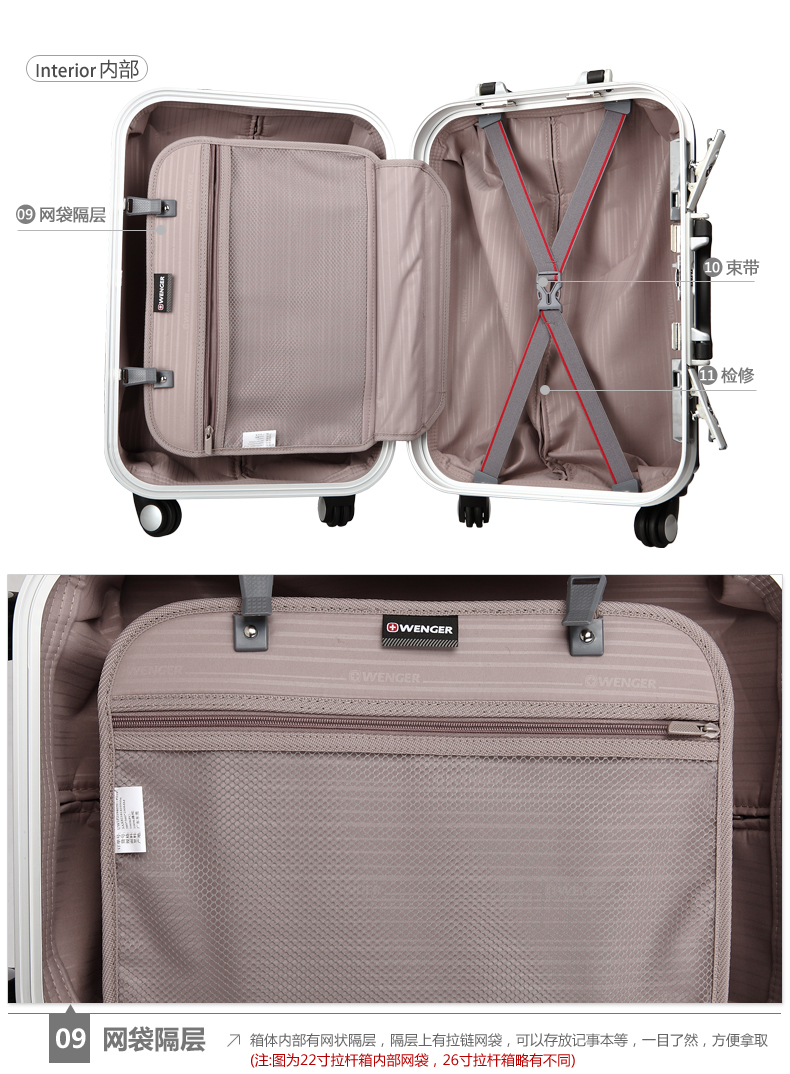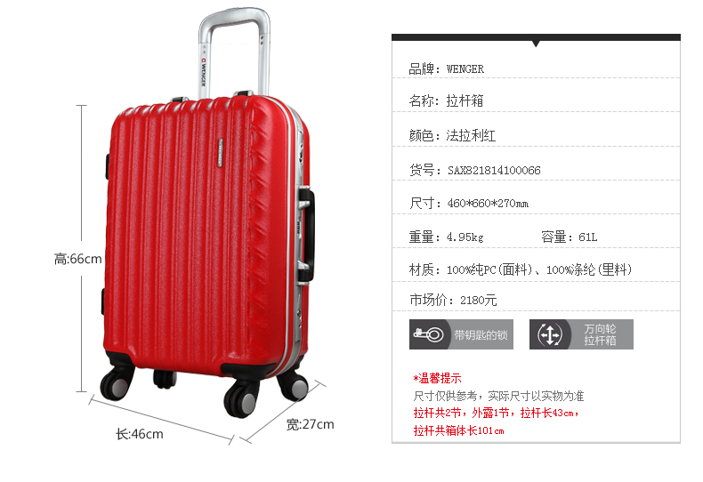 商品名称:Wenger/威戈 22寸拉杆箱万向轮旅行箱包行李箱密码箱潮 SAX821814100056