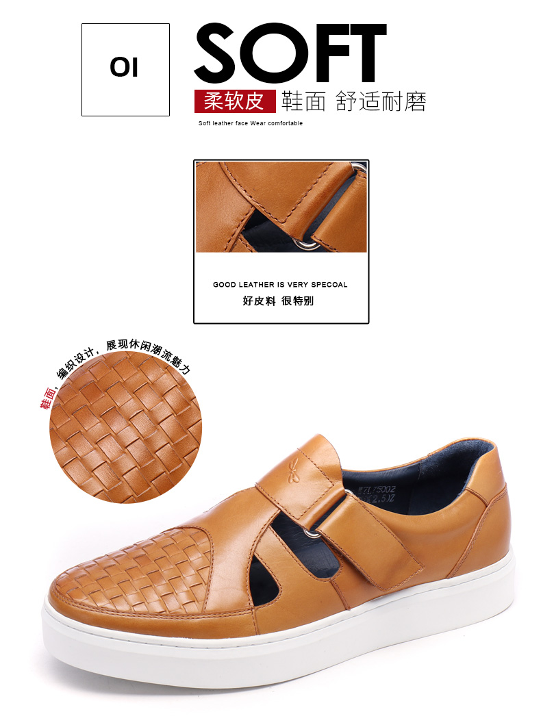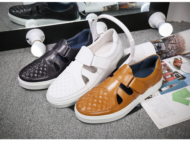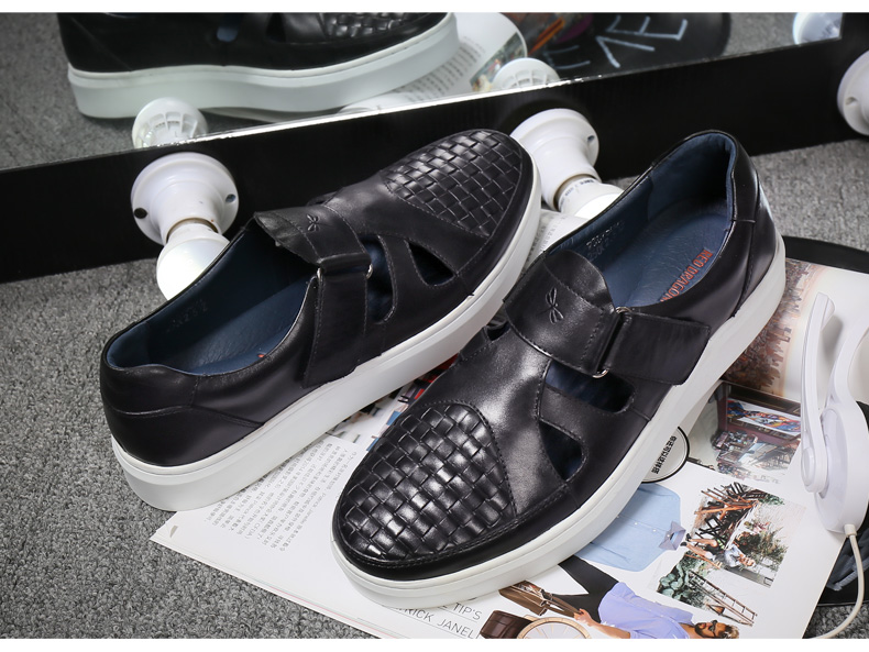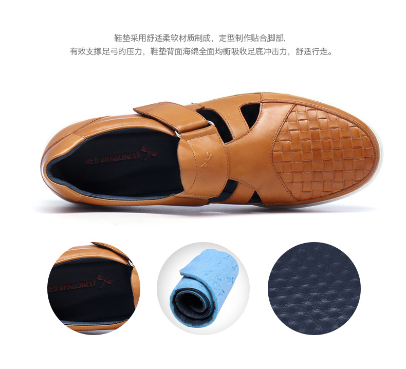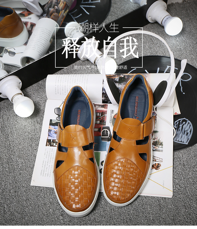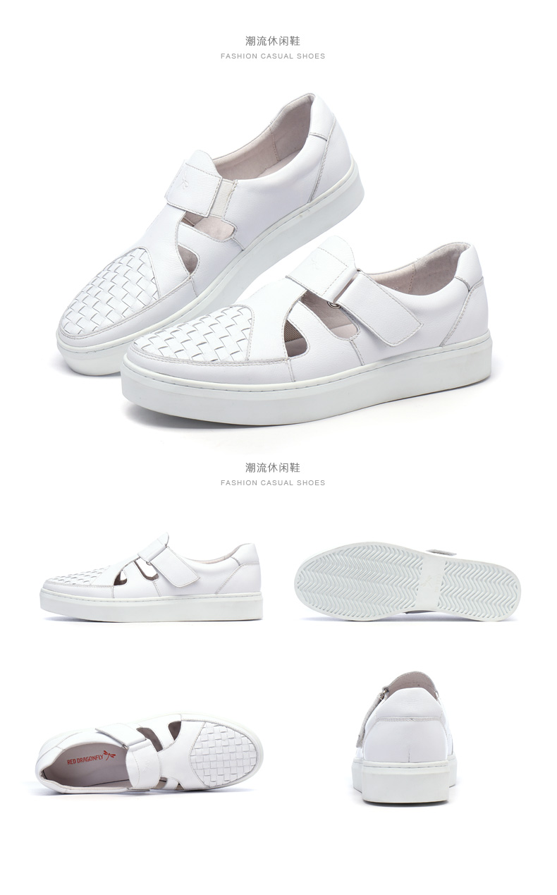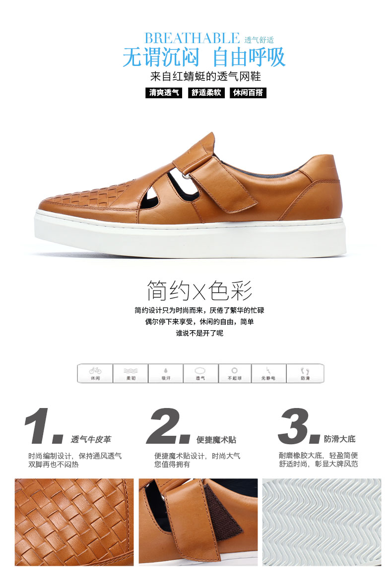 商品名称:红蜻蜓 真皮男鞋夏季新款潮流编织魔术贴休闲镂空皮鞋板鞋