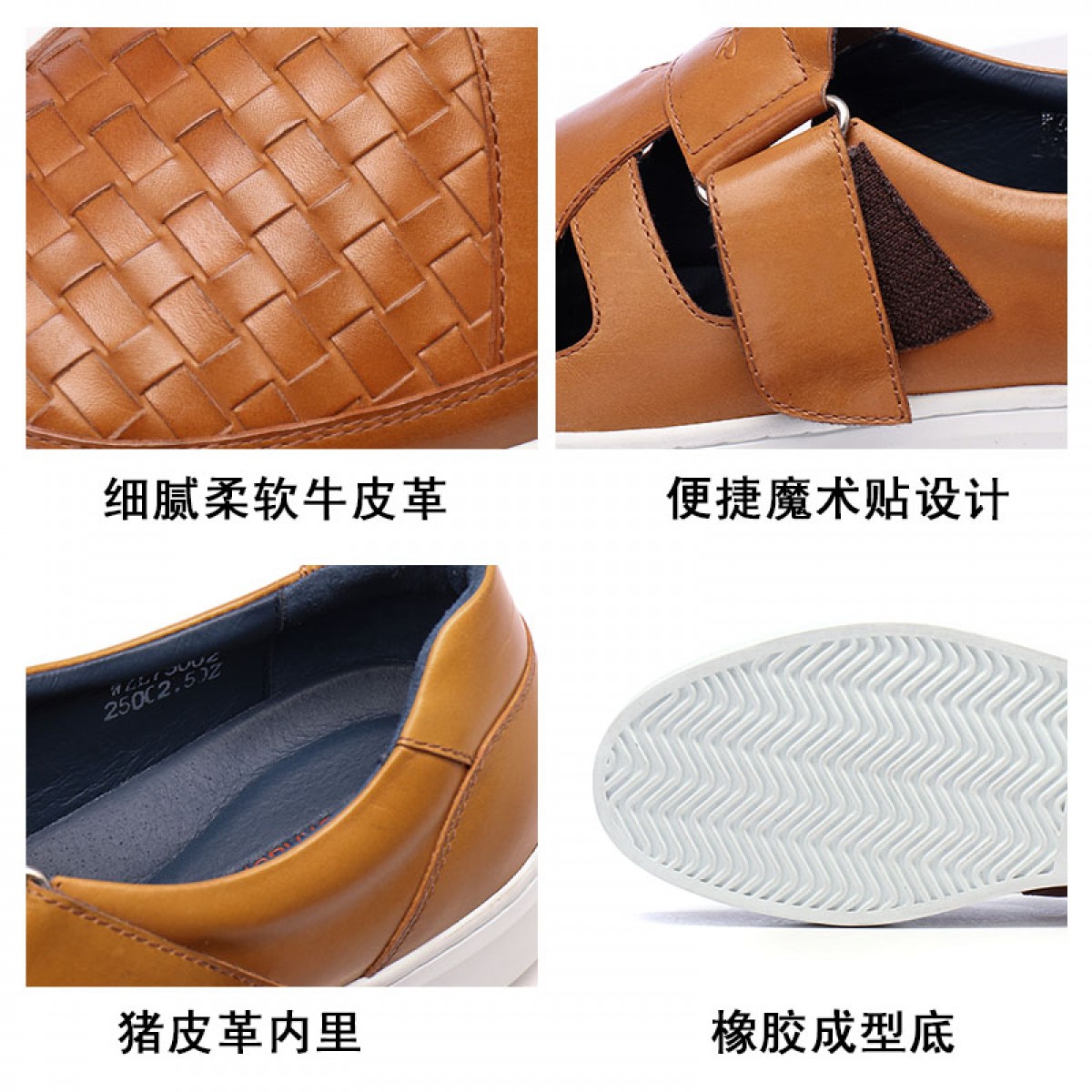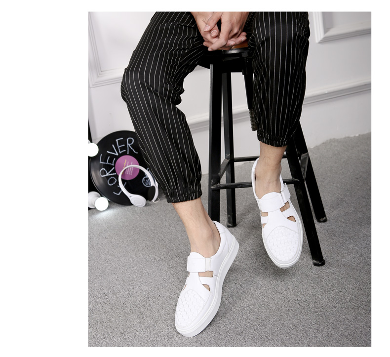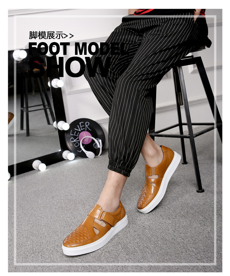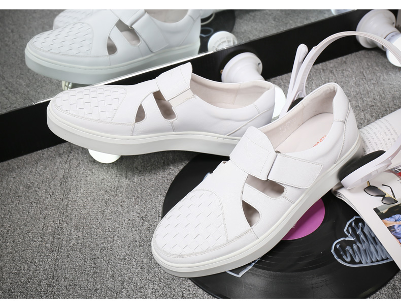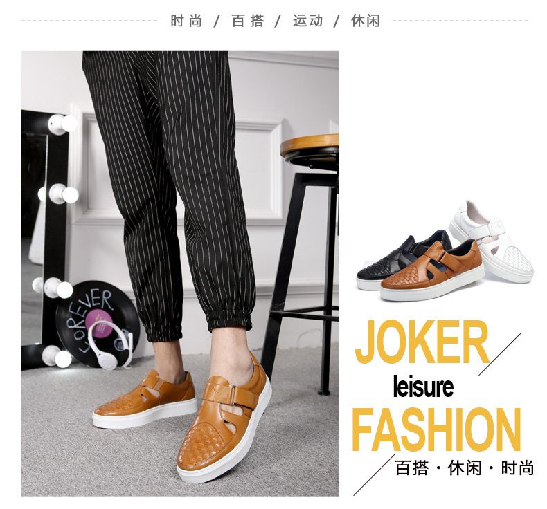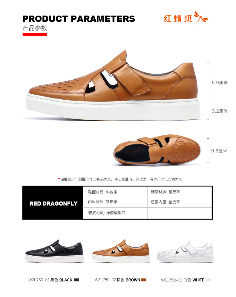 商品名称:红蜻蜓 真皮男鞋夏季新款潮流编织魔术贴休闲镂空皮鞋板鞋