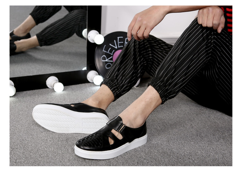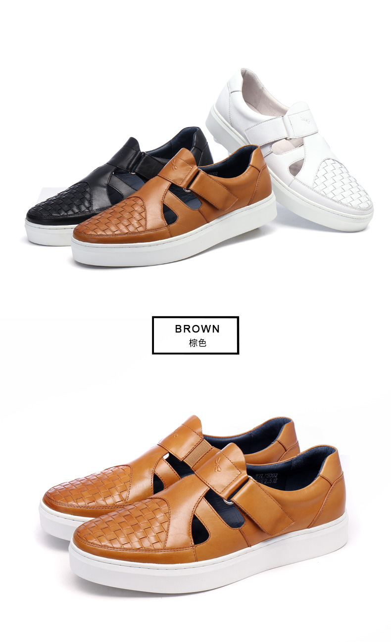 红蜻蜓 真皮男鞋夏季新款潮流编织魔术贴休闲镂空皮鞋板鞋