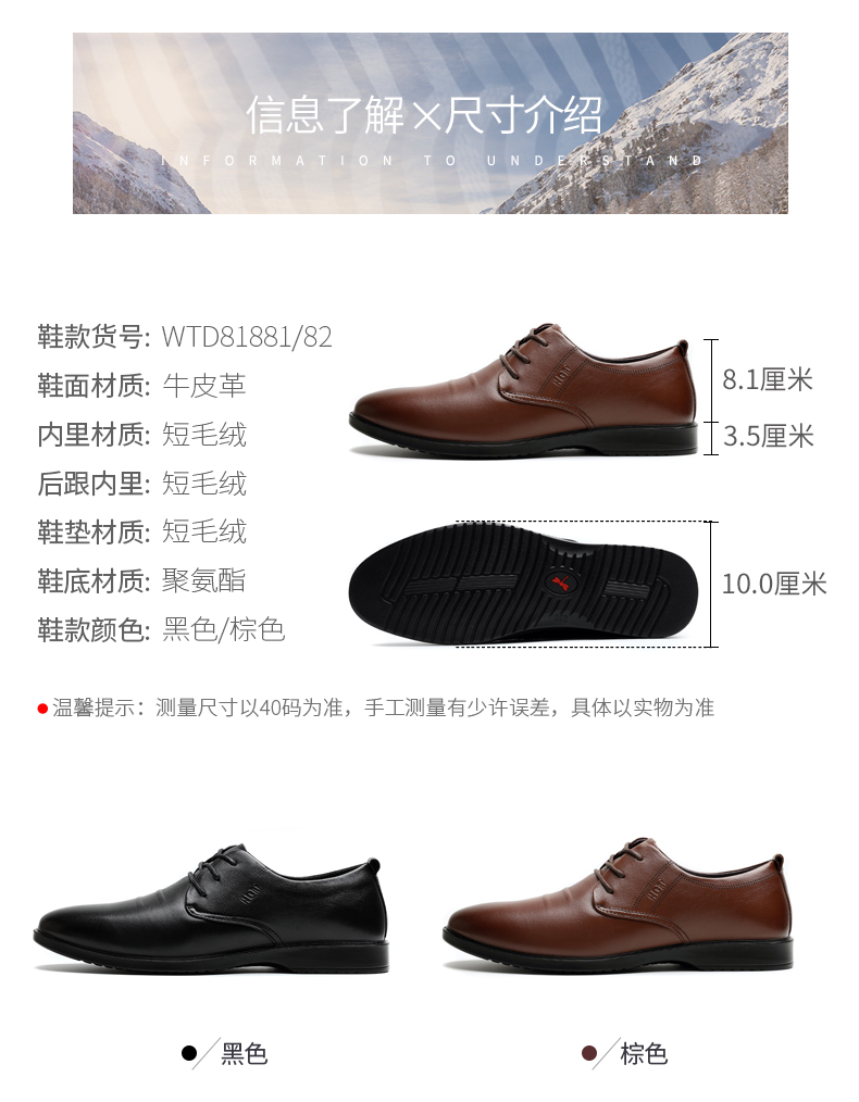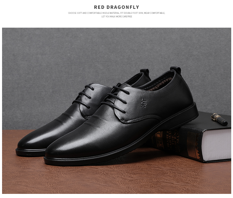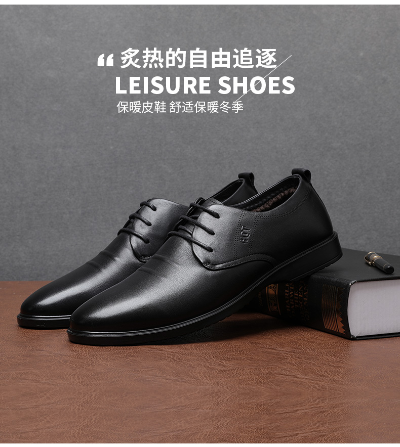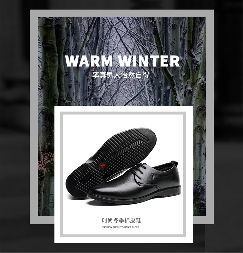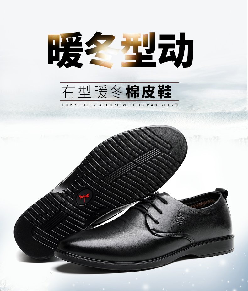 商品名称:红蜻蜓 男鞋冬季新款商务休闲皮鞋男加绒低帮棉鞋男