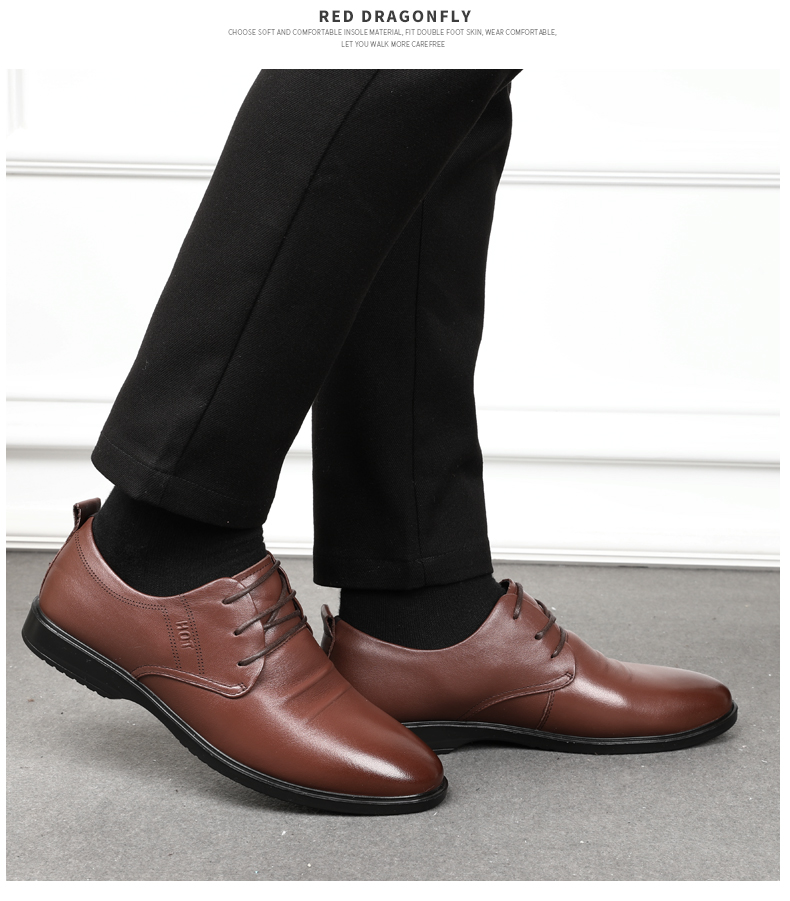 红蜻蜓 男鞋春季商务正装鞋子男士真皮低帮系带正装皮鞋男