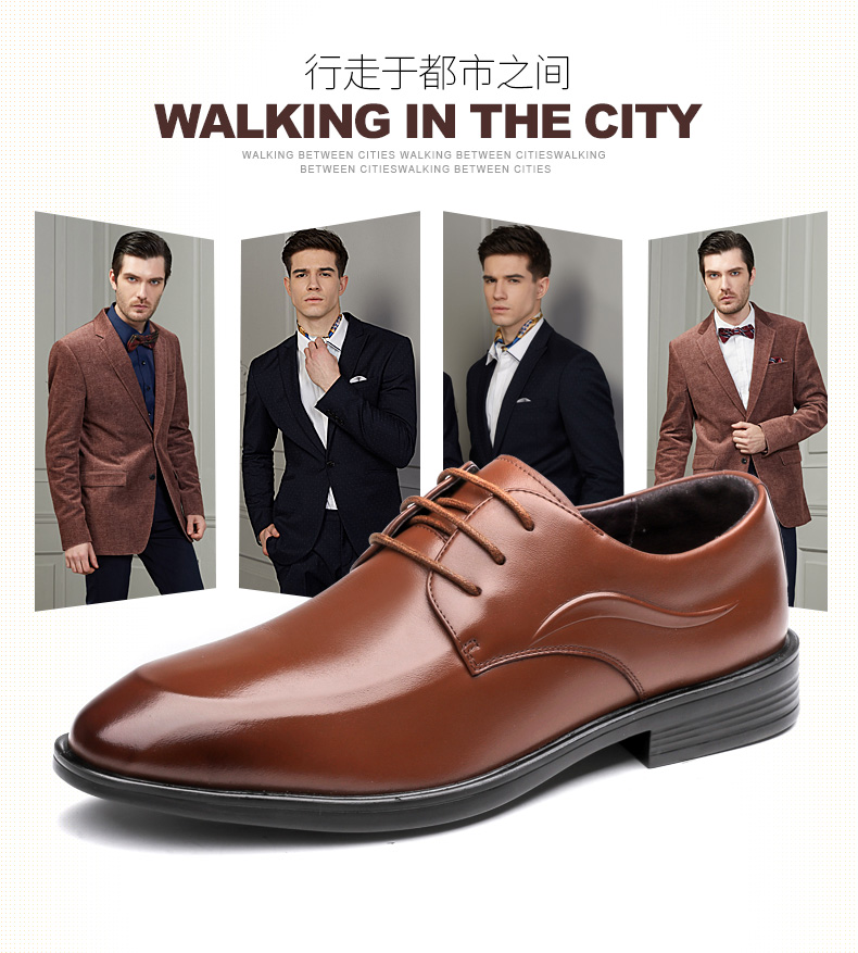 红蜻蜓 真皮男鞋春秋潮流男士商务休闲鞋低帮系带绅士皮鞋