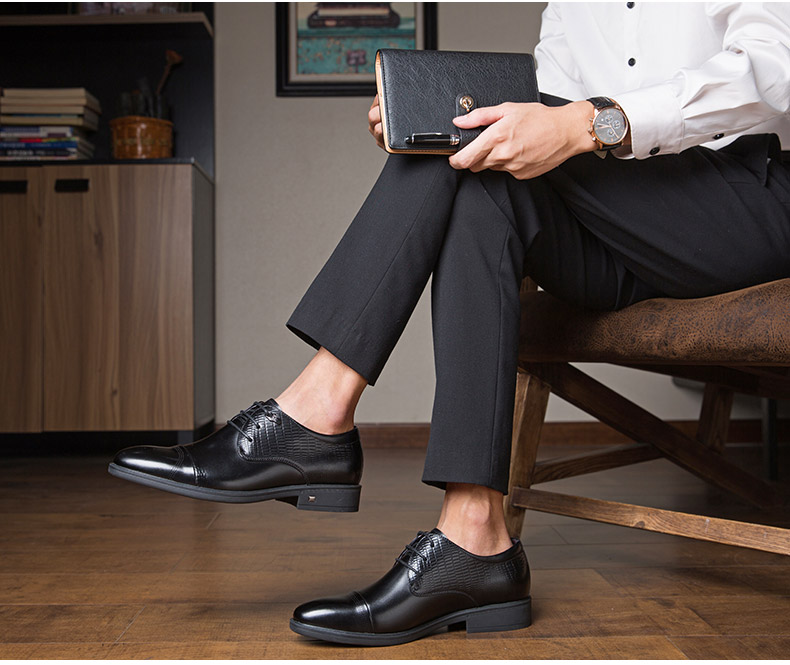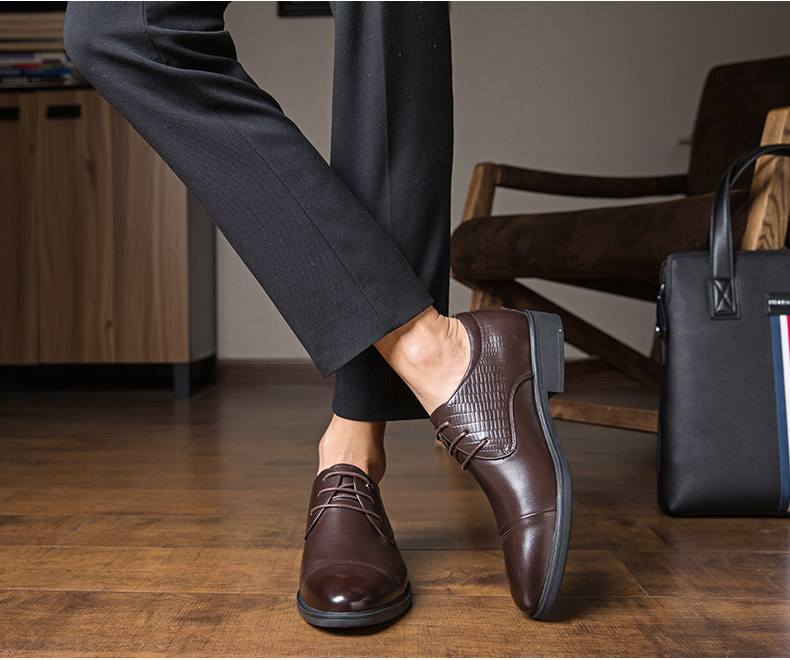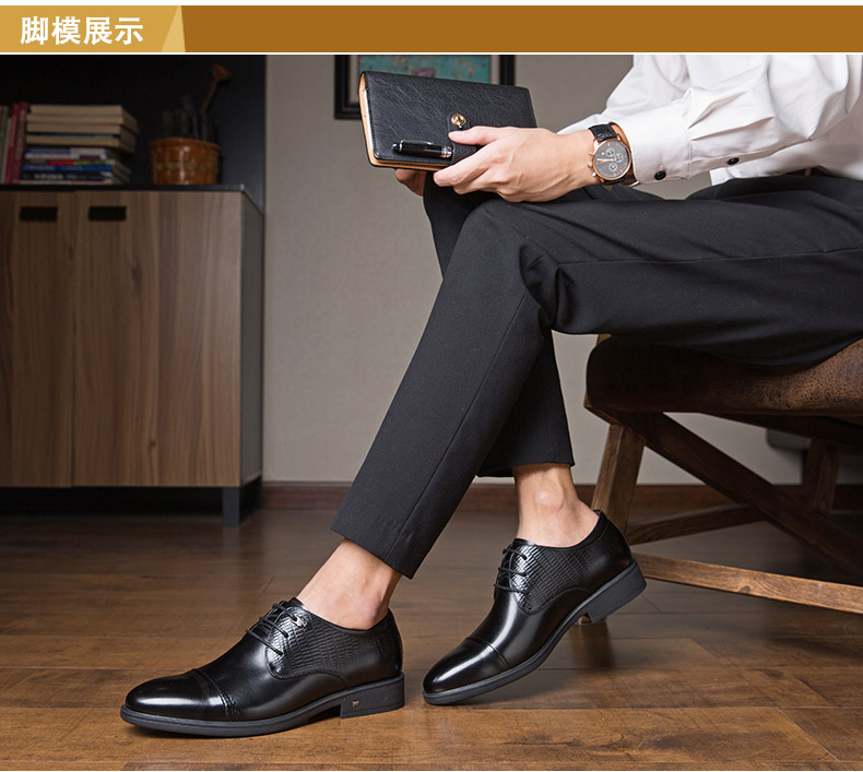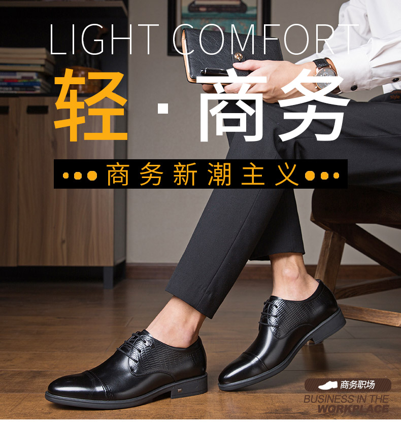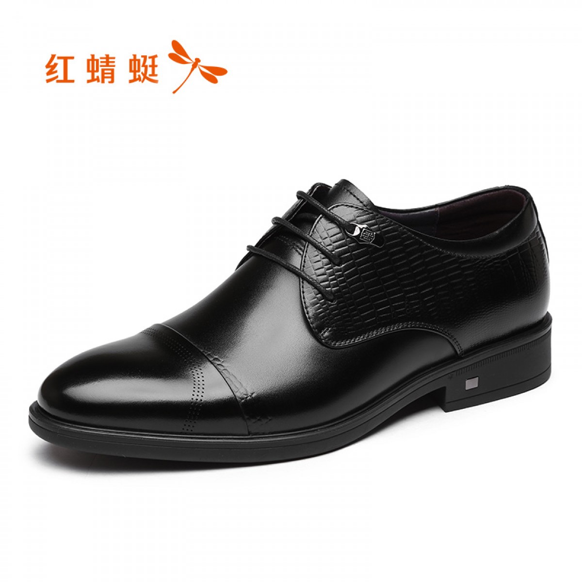 红蜻蜓 男鞋春季商务正装鞋子男士真皮低帮系带正装皮鞋男