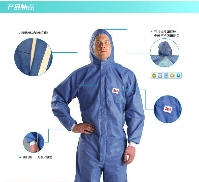 商品名称:3M 4532+带帽连体防护服 防静电服 工作服 防化服 防尘服 颗粒物