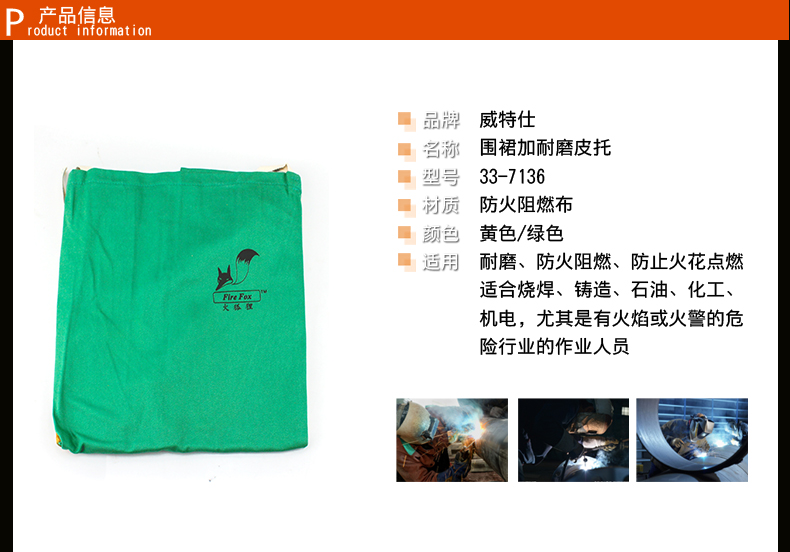 商品名称:威特仕 电焊围裙防火阻燃隔热防烫耐高温牛皮围裙防护服焊接皮托