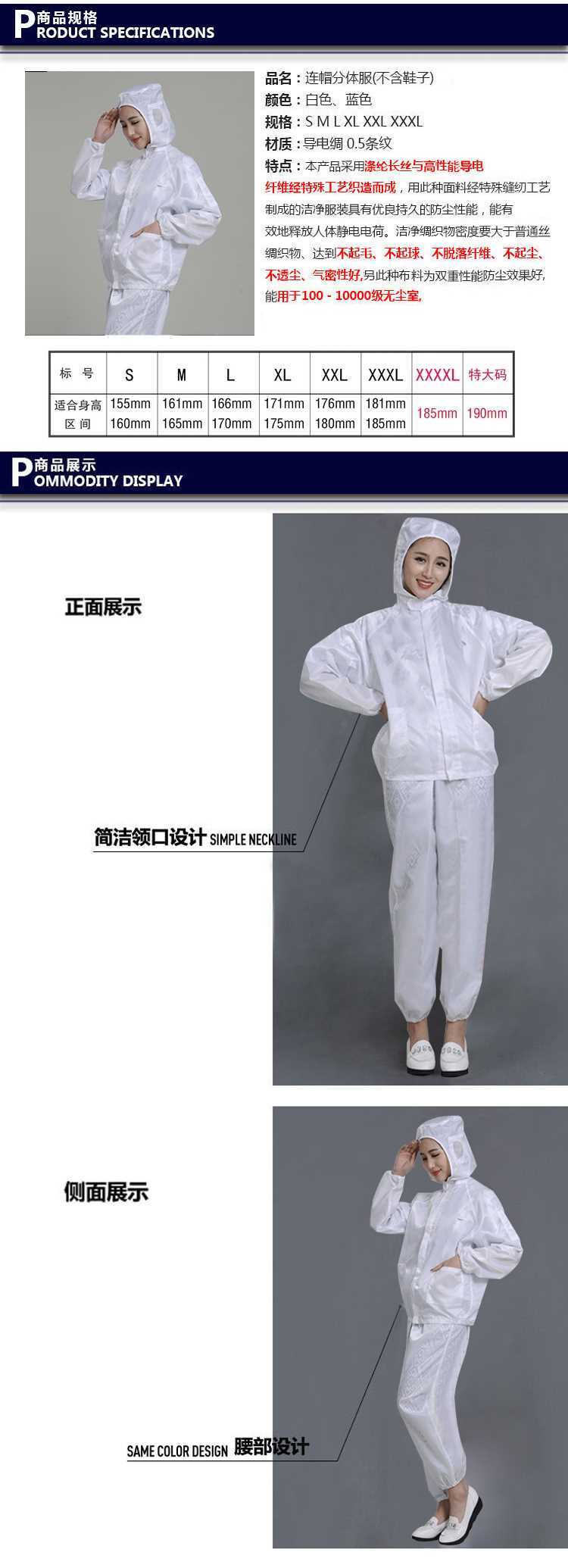商品名称:谋福 防静电服 工作服 无尘服 防尘服分体服连帽服食品制药车间喷