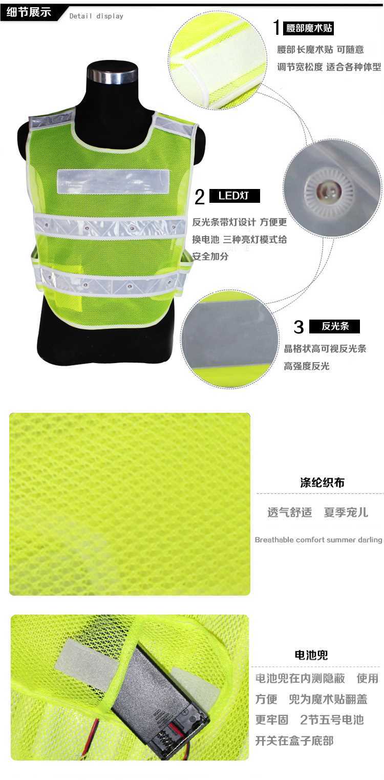 商品名称:谋福 LED带灯反光马甲施工环卫反光衣骑行安全服