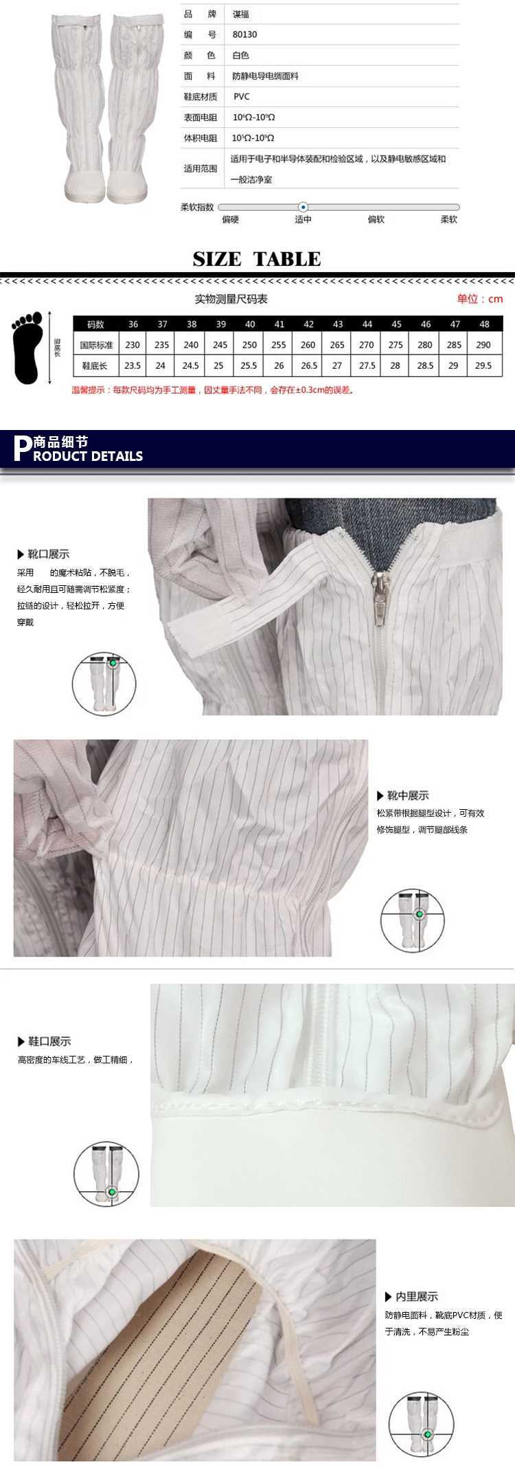 商品名称:谋福 防静电硬底高筒靴 PVC长筒靴 防尘鞋 防护靴 连体服配套 5mm