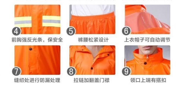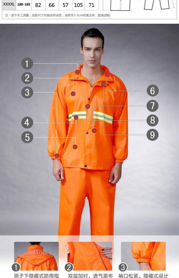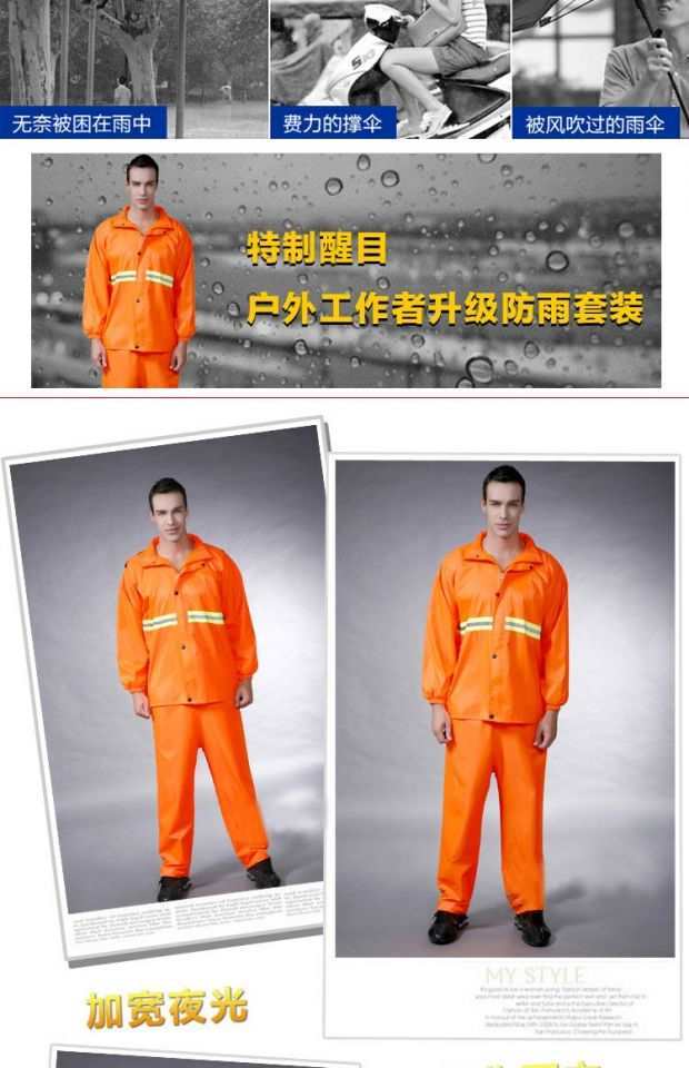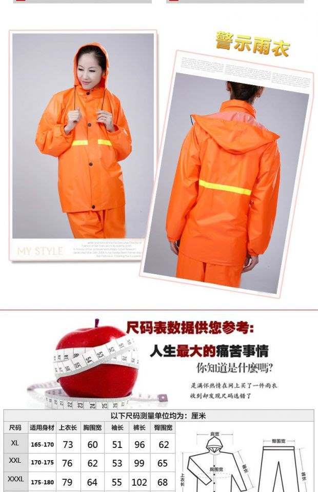 商品名称:谋福反光雨衣桔红夜光雨衣 夜光男女户外环卫工作服 荧光骑行雨衣