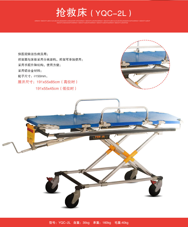 商品名称:日新 抢救床 可分离可升降铝合金抢救床 救护转运担架车 YQC-2L