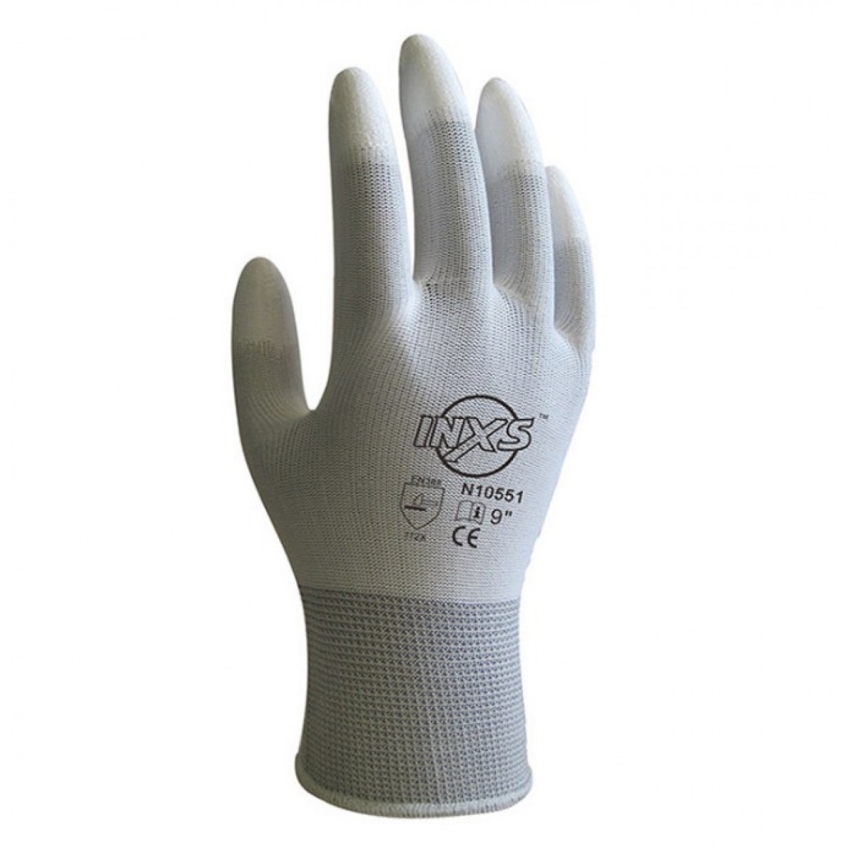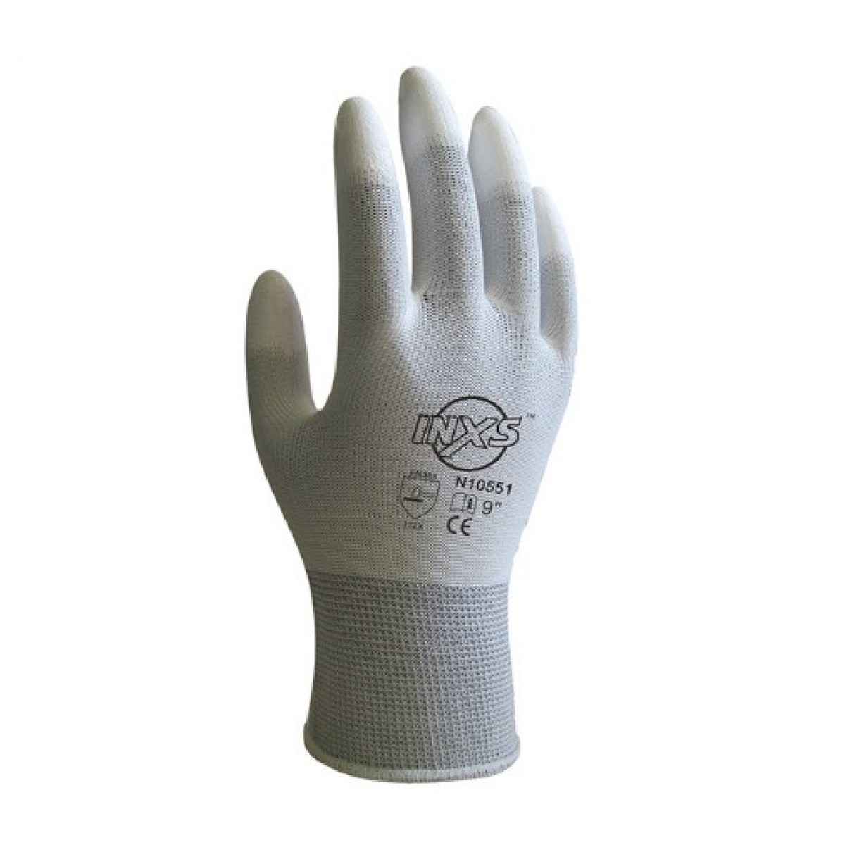 产品型号: N10551结构: 针织针数: 13衬里材料: 涤纶涂层材料: PU树脂表面效果: 指浸袖口类别: 针织罗口长度: 230-260mm颜色: 白尺码: 7、8、9、10包装: 1副/包,12副/ 打,120副/箱 特 性: - 指尖涂层,抓握灵巧,提供更有效的触感- 在干燥或轻油型环境中有效处理小型物体,同时还可提供卓越的灵巧性- 表面不留痕迹,透气快干