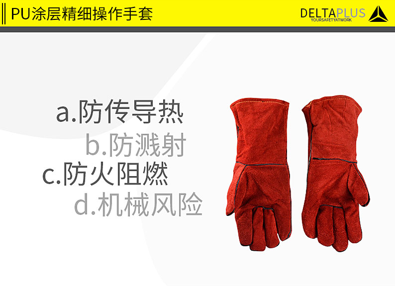 代尔塔 205515防护手套电焊工手套隔热耐磨牛皮焊接防火阻燃手套