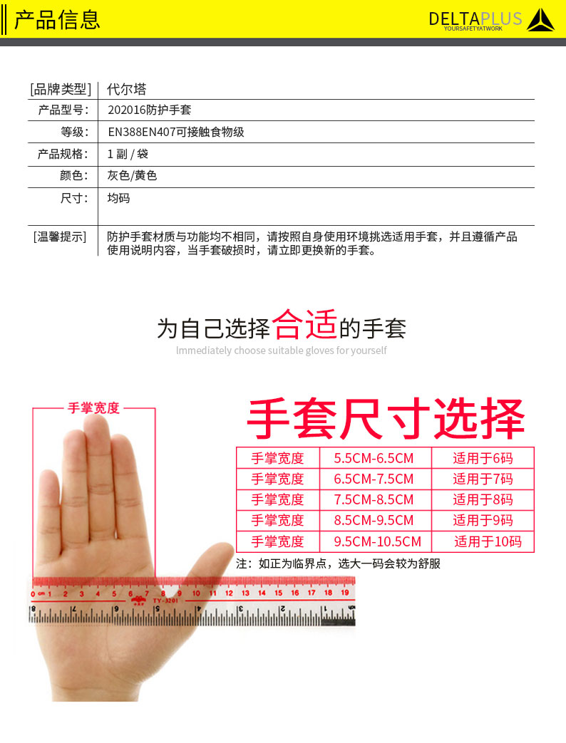 商品名称:代尔塔 202016防切割手套耐撕裂手套5级拇指加强防割手套工作劳保