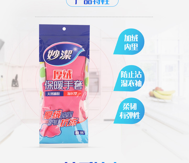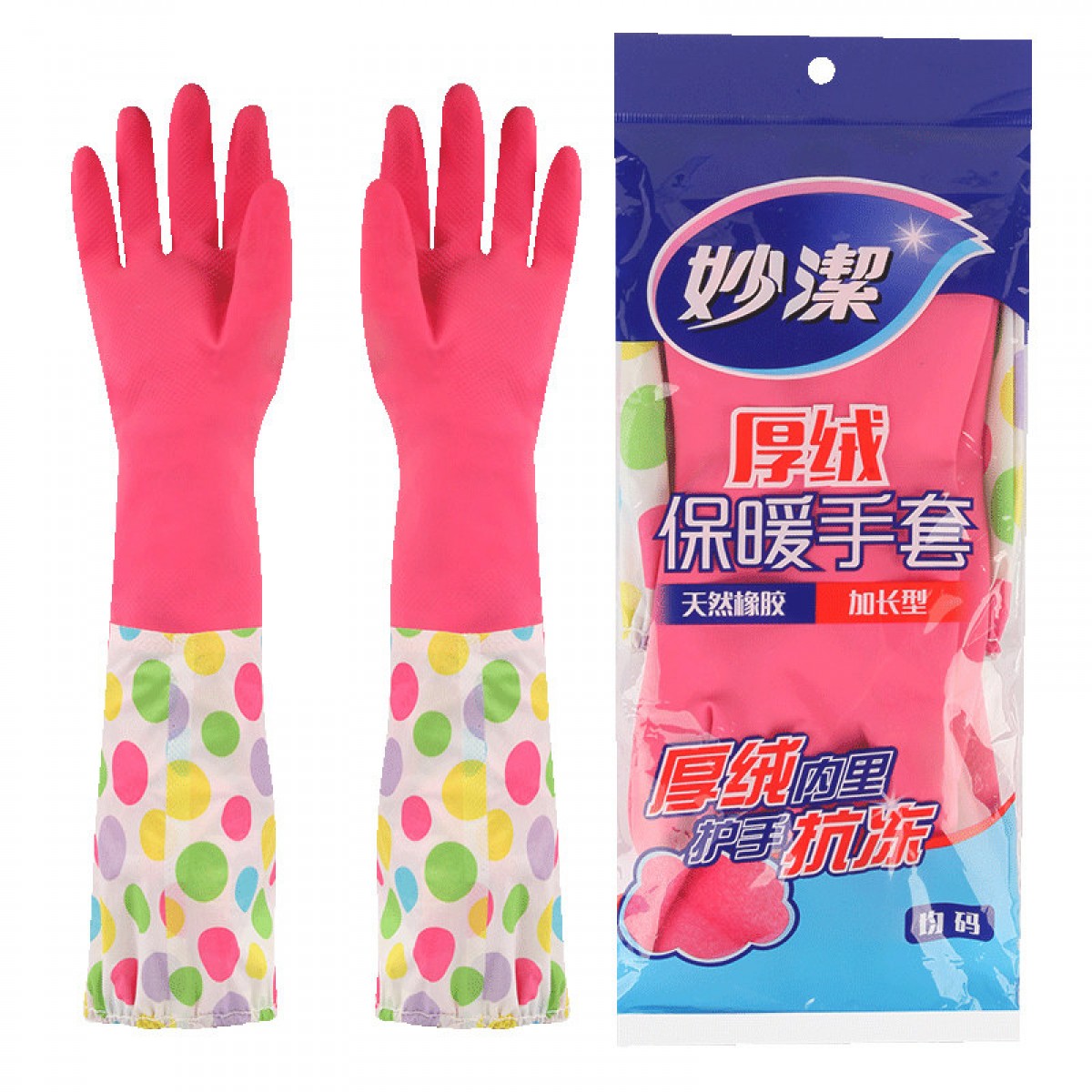 商品名称:妙洁加绒加厚冬季耐用保暖手套家务洗衣厨房防水橡胶手套