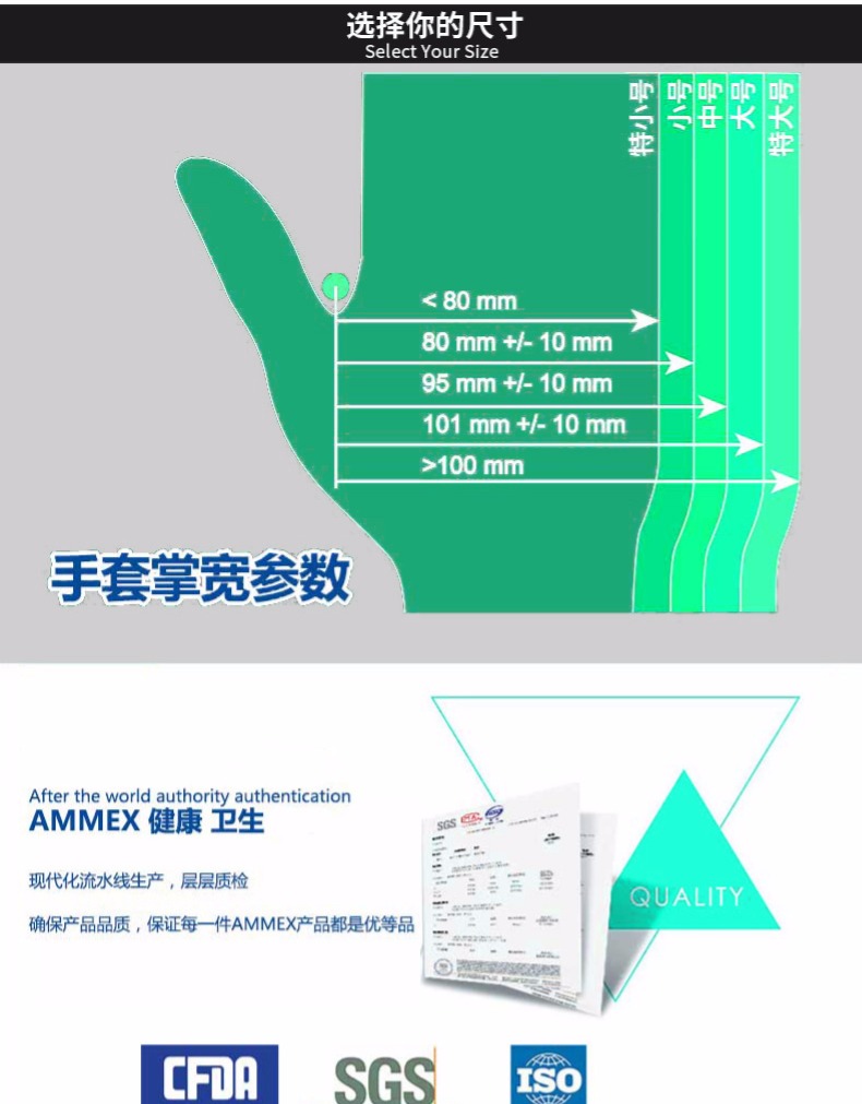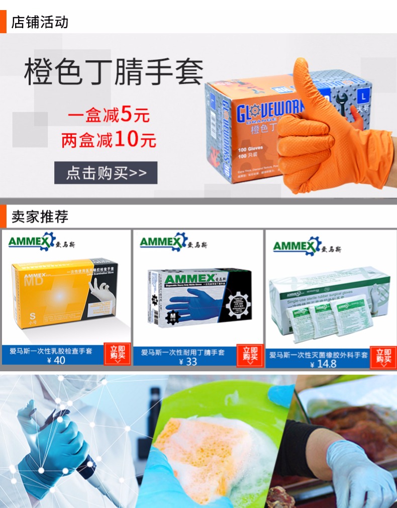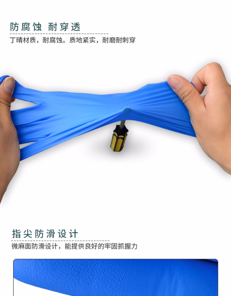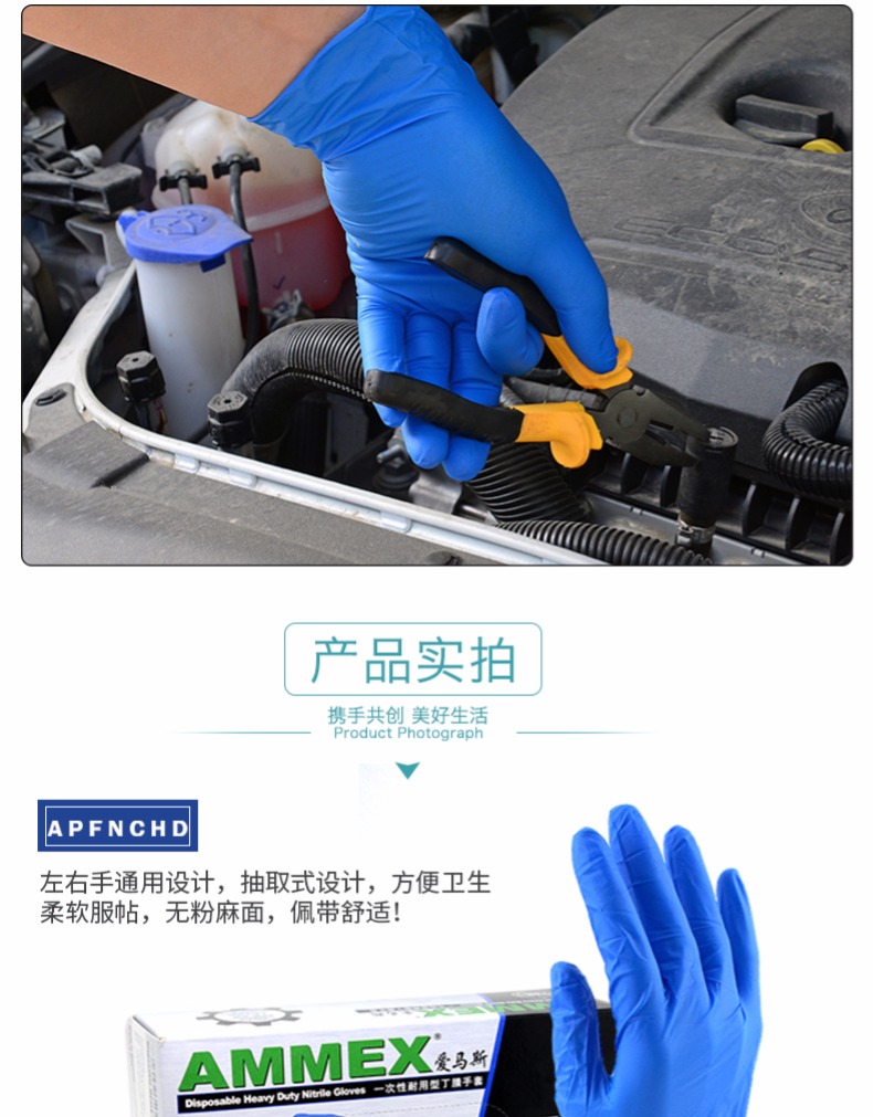 商品名称:AMMEX/爱马斯 一次性蓝色耐用型手套丁晴手套实验室家务耐油耐酸碱HD