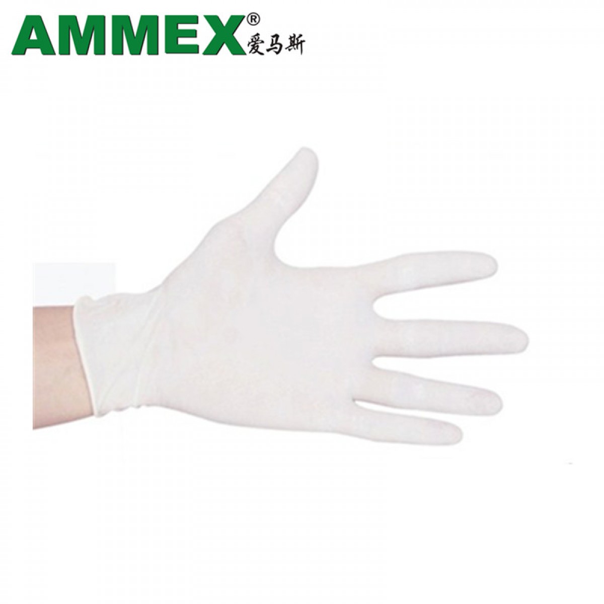 AMMEX/爱马斯 一次性乳胶手套 橡胶检查手套有粉 医生口腔牙科诊所100只TLCMD