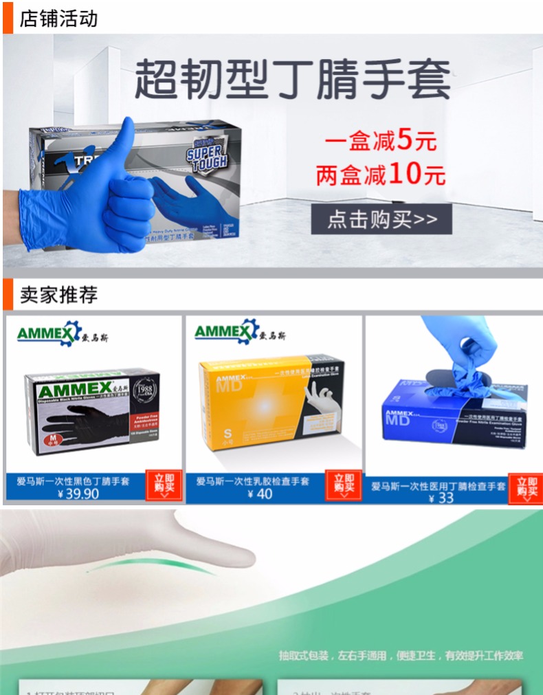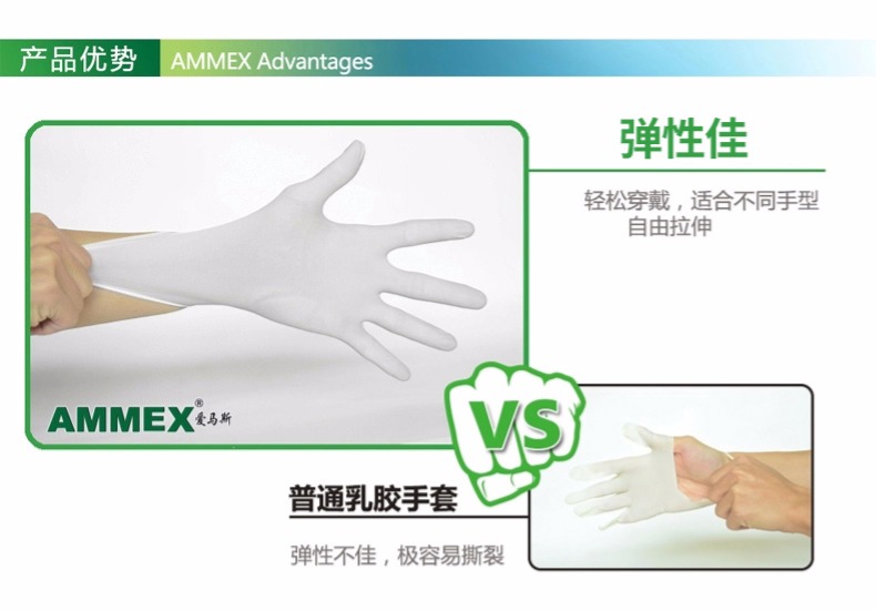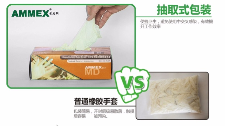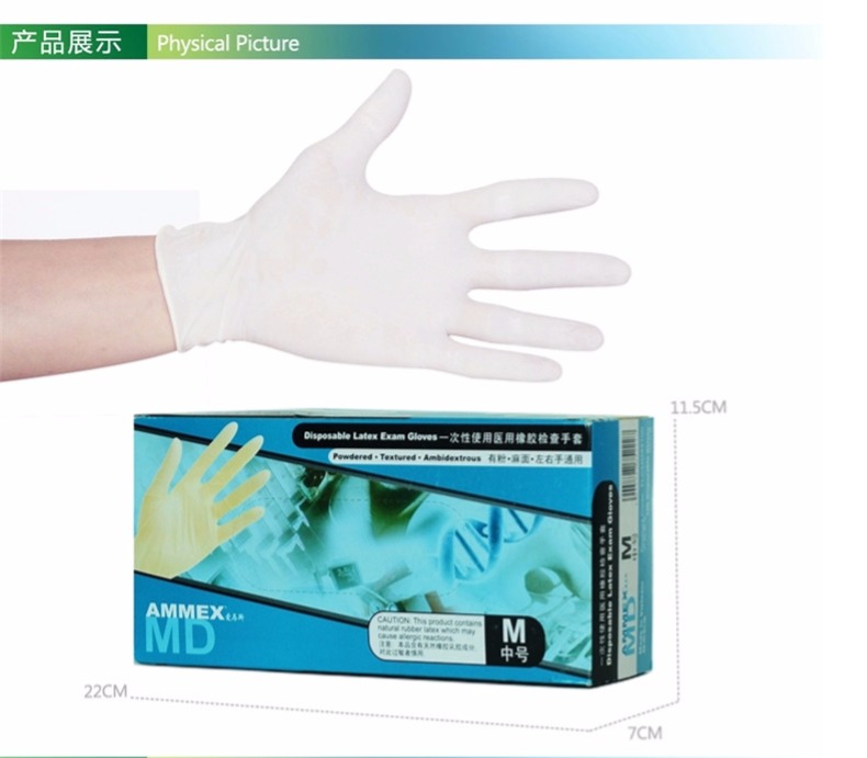 商品名称:AMMEX/爱马斯 一次性乳胶手套 橡胶检查手套有粉 医生口腔牙科诊所100只TLCMD