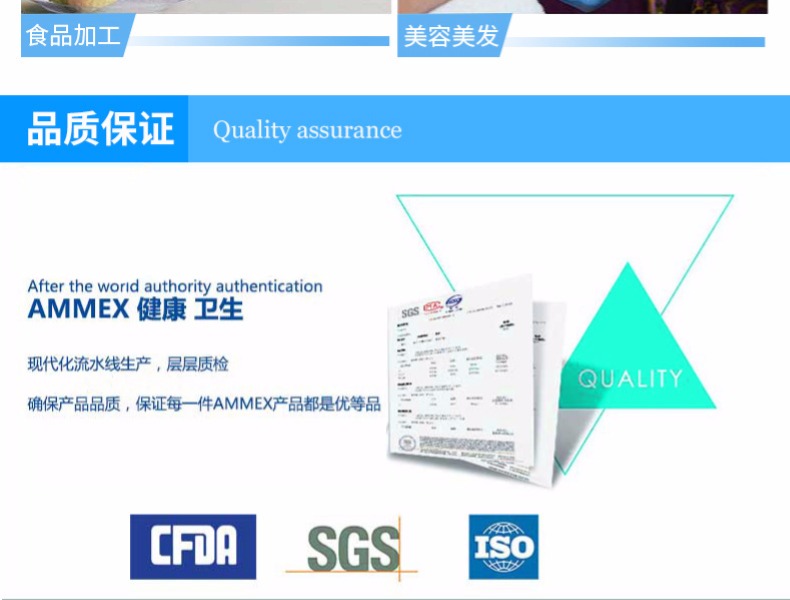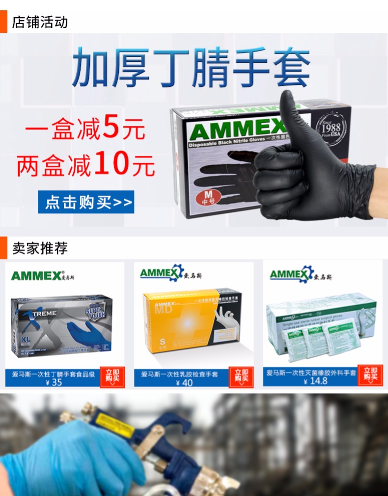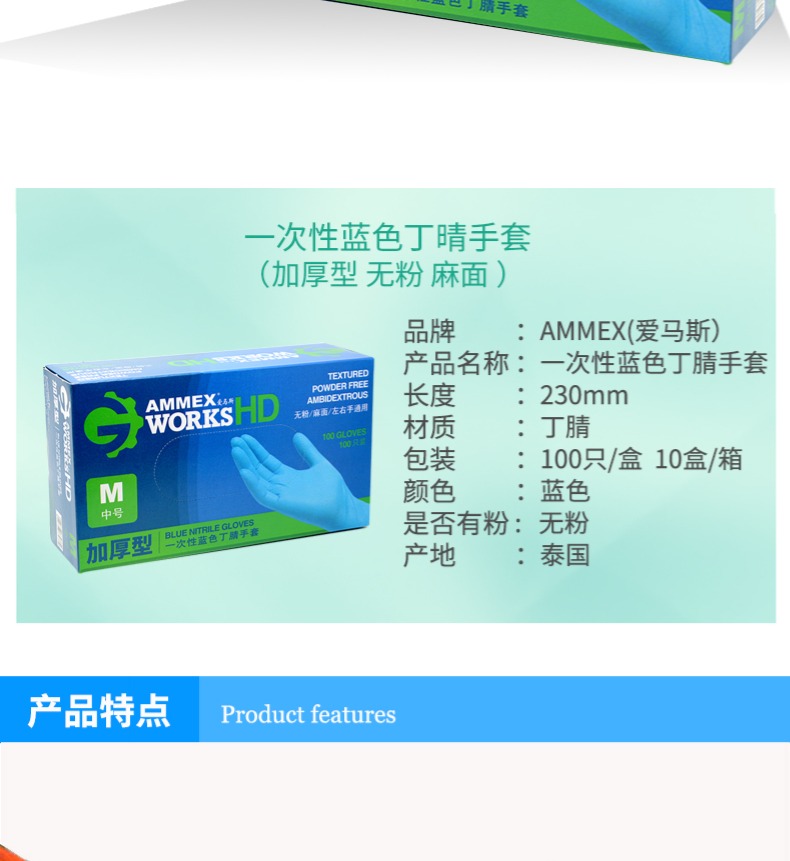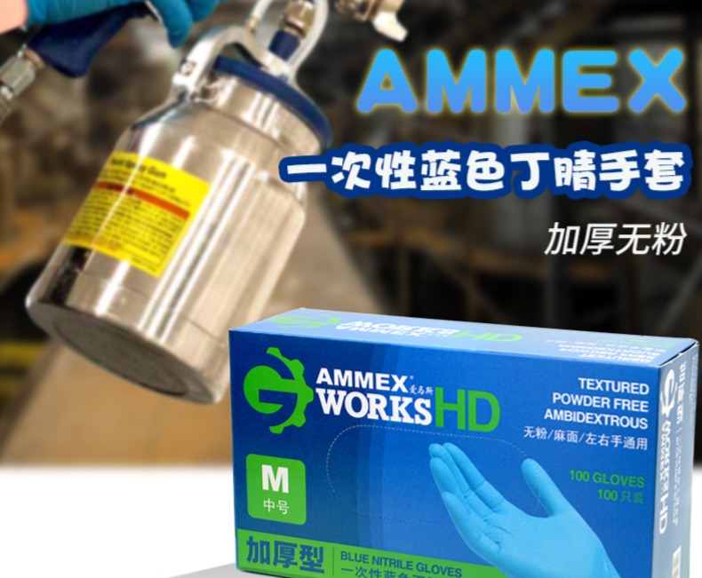 AMMEX/爱马斯 一次性蓝色*屏蔽的关键字*手套加厚型实验室手套烘焙牙科使用手套APFGWCHD