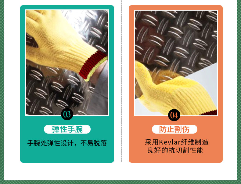 雷克兰 工作手套劳保用品防割手套隔热手套美国杜邦Kevlar防护手套21-843C