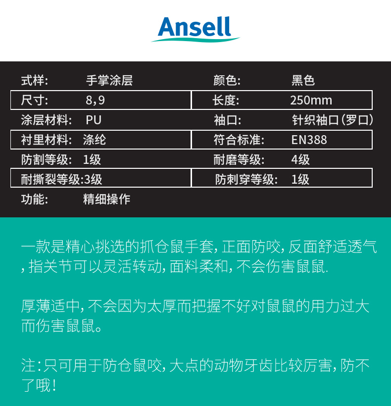 商品名称:Ansell/安思尔 仓鼠用品仓鼠防咬手套 鼠鼠防啃 手抓仓鼠 保护手套48-126